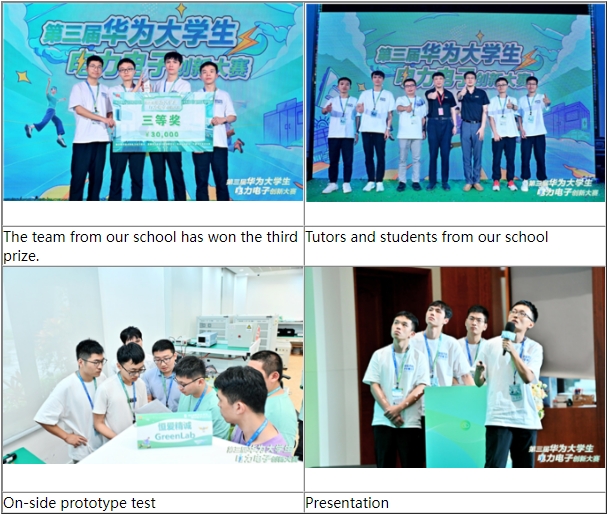 The "Huawei College Student Power Electronics Innovation Competition" is an event created by Huawei Digital Energy Company to promote the fusion of digital technology and power electronics innovation among university students. The competition judges consist of renowned experts in the power electronics industry and Huawei's chief technical engineers. This competition is widely recognized as one of the top innovation events in the field of power electronics for university students and serves as a high-quality platform for exploring cutting-edge technologies in new energy among elite power electronics students nationwide. Our institute's power electronics discipline has always been committed to guiding students' thinking and fostering knowledge innovation, with the goal of cultivating outstanding young talents in the field of new energy. This award reflects the comprehensive strength of our institute's power electronics discipline and the achievements in cultivating innovative talents.