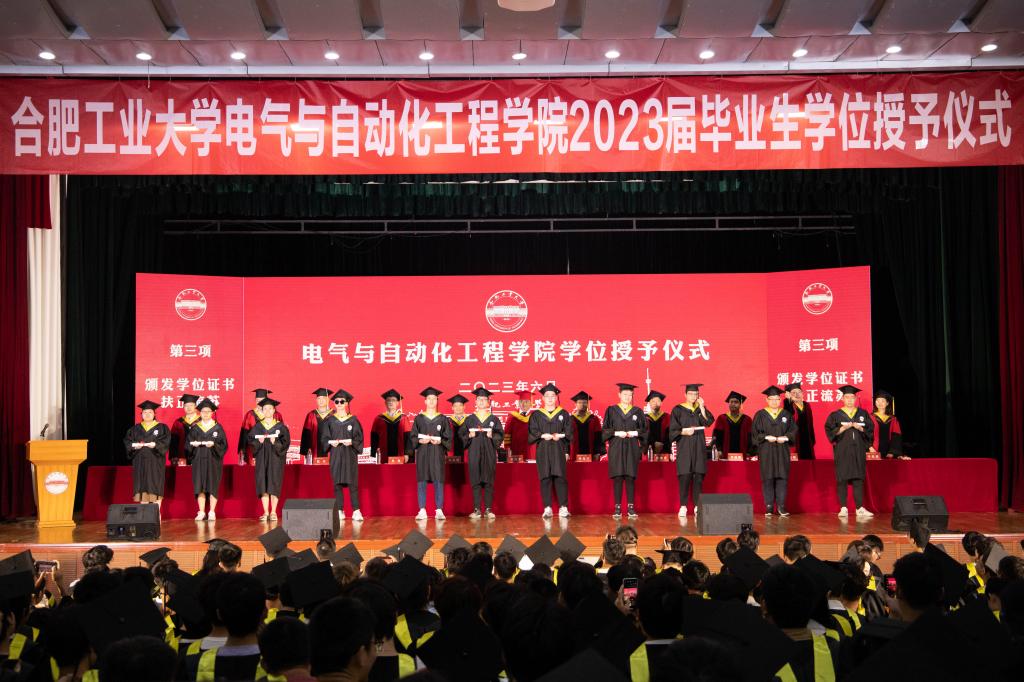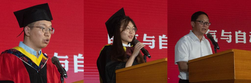 仪式上,李贺龙教授作为教师代表发言,向取得学位的2023届毕业生表示祝贺,他表示电气公司相关专业赶上了好时代。同学们要感恩时代赋予的使命,一方面要百舸争流,在专业实践中贡献自己的力量,同时也要珍惜自己能够处在朝阳行业当中,要不骄不躁,做好长期规划,持续学习,时刻保持竞争力。始终坚持不懈,心怀感恩,踏实收获精彩的人生旅程。董事长奖获得者,电气工程及其自动化专业2019级3班刘丽娜同学作为毕业生代表发言,她深情感恩母校的培育培养,感恩老师的辛勤指导,号召广大毕业生牢记“厚德、笃学、崇实、尚新”校训,自觉以成长为“德才兼备、能力卓越,服务国家的骨干与领军人才”为目标,不负韶华,奋勇成为新时代前进的搏击者。毕业生宋月恒同学的父亲代表全体家长发言,他表示工大永恒,世界常新。感谢公司对孩子的精心培养和深情厚爱,祝愿公司事业蓬勃发展,老师桃李满天下,祝愿同学们鹏程万里,拥有灿烂辉煌的精彩人生。