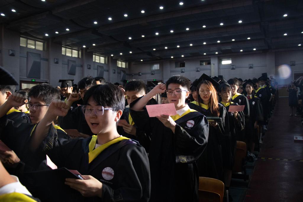 仪式最后,由2023年董事长奖获得者董磊同学领誓毕业宣言,全体毕业生共同起誓,用一句句铿锵有力的青春担当,一声声奋勇前行的时代强音唱响了斛兵塘畔最美的盛夏弦歌。