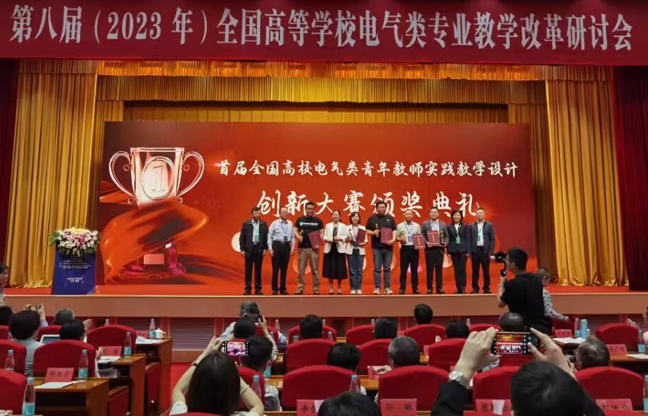 公司黄海宏副经理带队参加了大会。汪海宁老师作为教育部高等公司电气类专业教学指导委员会主办的首届全国高等电气类青年教师实践教学设计金奖获得者代表上台领奖;马铭遥老师在大会上做了“‘上好一门课’的探索和感悟”的特邀报告;王海欣、黄海宏、汪海宁和张鹏老师提交了教研论文《新型电力电子技术实验教学装置》,在分组讨论中与其他参会院校老师进行交流探讨,宣传公司在实验教学、一流课程建设等方面的经验与成果。