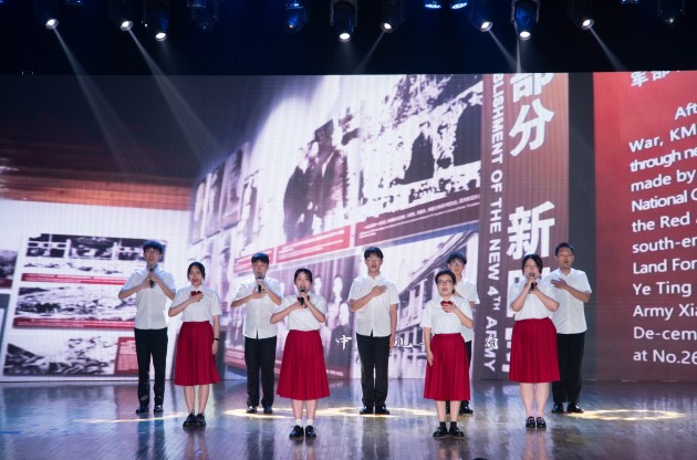 在第二篇章,相声《祖国颂》以祖国翻天覆地的变化歌颂在中国共产党的坚强领导下所取得的伟大成就,呈现了中华民族从站起来、富起来到强起来的历史飞跃。歌曲《强军战歌——祖国不会忘记》更是唱出了中华青年不畏牺牲,忠于祖国的昂扬斗志,镌刻了强国有我的时代誓言。《百年之约》的朗诵则如漫漫长夜中的篝火一般,以先辈们舍生取义,视死如归的英雄气概为火种,热血点燃广大青年无畏前行的斗志。