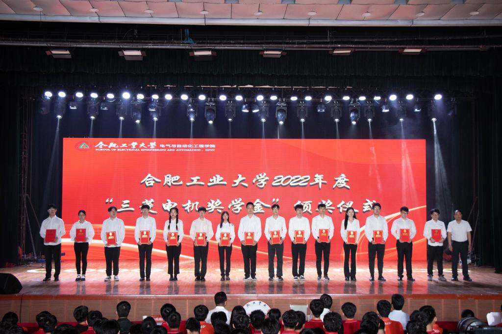 员工会办公室副主任王成山为2022年度“三菱电机奖学金”获奖者颁奖