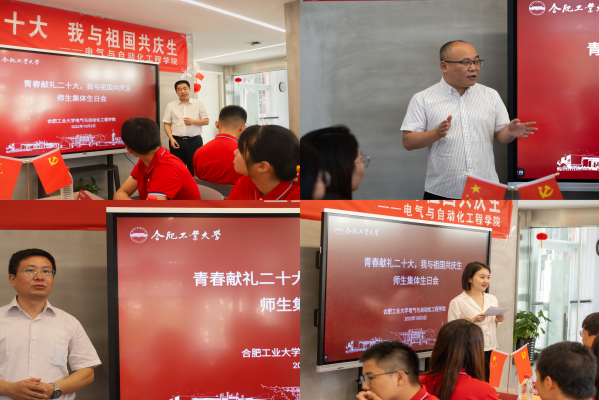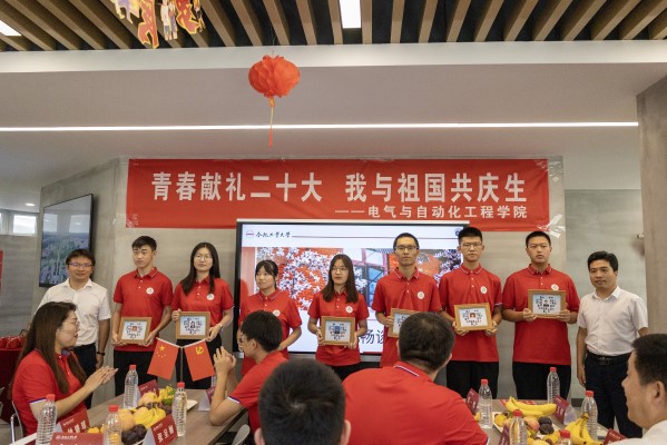 在教师代表谈理想奉献环节,阚超豪老师谈到今天我们师生以特殊形式喜迎党的二十大,致敬我们伟大的祖国,希望同学们能够不忘初心,砥砺奋斗,努力为祖国的建设添砖加瓦。陈波老师分享道,老一辈科技工者在艰苦环境下为祖国建设发展呕心沥血,奠定了强国之基,希望同学们立大志、存高远、健身心、共成长,接好新时代接力棒,努力学习成长成才,为祖国科技发展贡献我们电气人的力量!姜卫东教授就实践的意义与同学们进行分享。希望同学们不在乎今后做什么,从事什么职业,关键在于要做对社会有用的人,能为人民服务的人,能积极投身中国特色社会主义建设的人;希望同学们积极参加社会实践,从实践中理解祖国发生的巨大变化,做到与祖国同呼吸,共命运。公司员工工作办公室副主任左能老师谈到,党和国家的期待、员工成长成才的信任是我们辅导员砥砺前行的不竭动力,在今后“平凡”的一生中,将继续用点滴行动追随“英雄梦想”,用爱联接辅导员的育人梦和员工的成才梦,用青春报效祖国,为伟大中国梦的实现贡献力量!