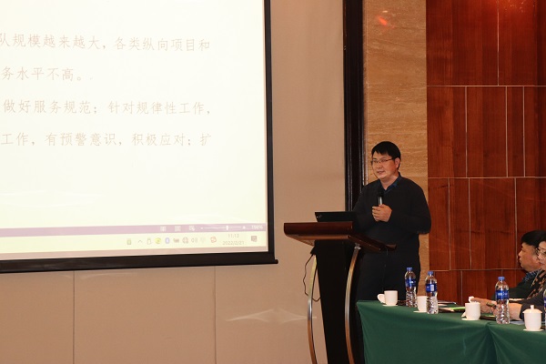 科研副经理赵吉文从优化科研服务体制、重大项目组织、国家级奖励培育、国家级人才培育、服务产业和服务区域创新、基地建设等六个方面分析研判公司科研工作当前存在问题,提出了工作思路与应对措施。