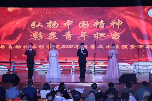 伴随着主持人的介绍,晚会开始,全体起立,奏唱国歌。本次的演出活动通过班级文化、班徽介绍、合唱、话剧、舞蹈等传达同学们对祖国、公司公司和班级的热爱,评委进行打分,优中选优,最后电气21-1班荣获一等奖、自动化21-2班等两个班级荣获二等奖、电气21-2班等三个班级荣获三等奖。