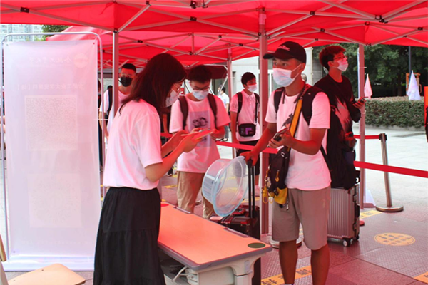 在工作人员的指引下,入学新生依次通过体温测量、更换口罩、查验三码(安康码、行程码、入校码)、行李消毒、公司报到、宿舍核验等多个环节。建立多重保障,严抓疫情防控,确保师生安全。