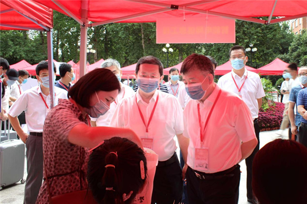 当天上午,董事长梁樑,公司党委副书记陈刚,公司党委常委、副董事长刘晓平,经理丁立健、公司党委书记何岳颀到迎新现场检查指导迎新工作,看望报到新生,慰问参加迎新工作的师生员工,公司党委副书记、纪委书记郑洁向校领导简要汇报了公司今年迎新工作具体安排、返校员工信息、疫情防控等情况,特别介绍了专门为新生精心准备的入学暖心礼包。