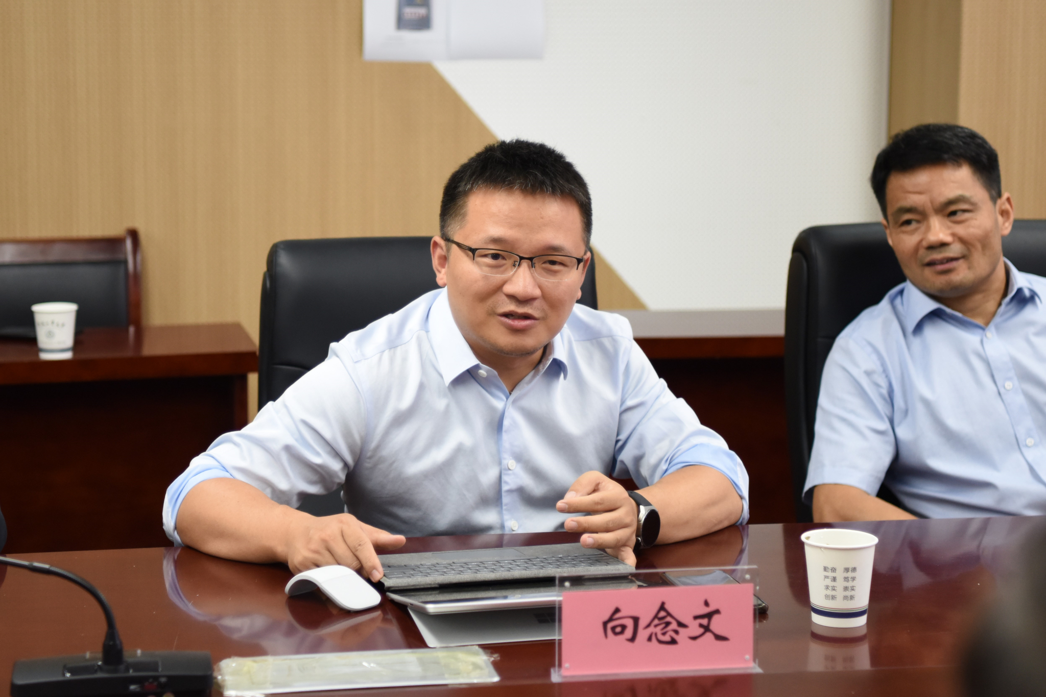 会上,向念文对王静峰、王东坡一行的到来表示热烈欢迎,并介绍了公司团队力量、专业设置、团队建设、科研平台、校企合作等方面情况。