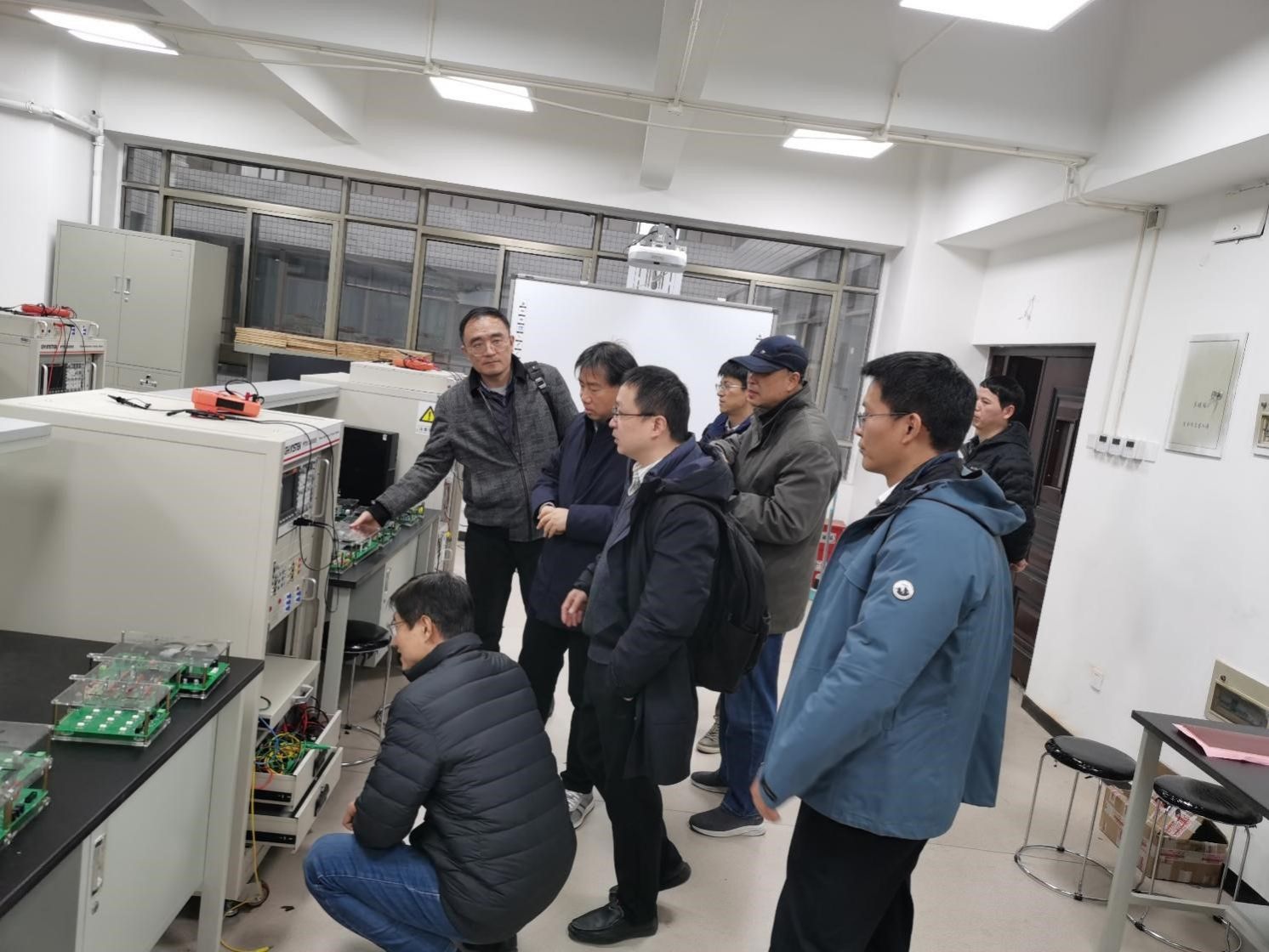 最后,与会专家参观了电力电子与新能源综合系统联合实验室、继远实训基地、机器人实验室、电机实训基地等,并与公司教师就新能源变流、机器人控制系统、电机下线等实验设备进行了深入交流。