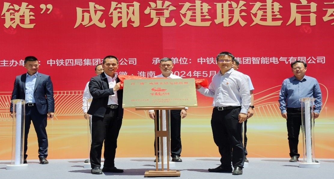 5月23日上午,中铁四局集团智能电气有限公司投产仪式暨百“链”成钢党建联建启动仪式在安徽淮南寿县新桥国际产业园隆重举行。m88官方网站登录地址副董事长吴华清、研究生院团队建设与评估处副处长吴红斌、m88官网经理向念文、电工与电子技术系书记陈波以及光伏技术研究所副所长牛海红等出席活动。
