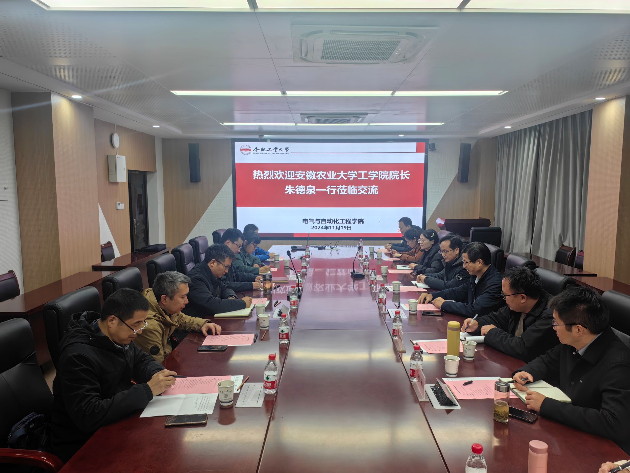 11月19日上午,安徽农业大学工公司经理朱德泉与电气工程系负责人、教师代表一行赴公司开展调研交流活动。交流座谈会在逸夫楼1009会议室举行,公司经理向念文、副经理孙伟等领导和电气工程专业相关负责同志参与座谈。会议由孙伟主持。