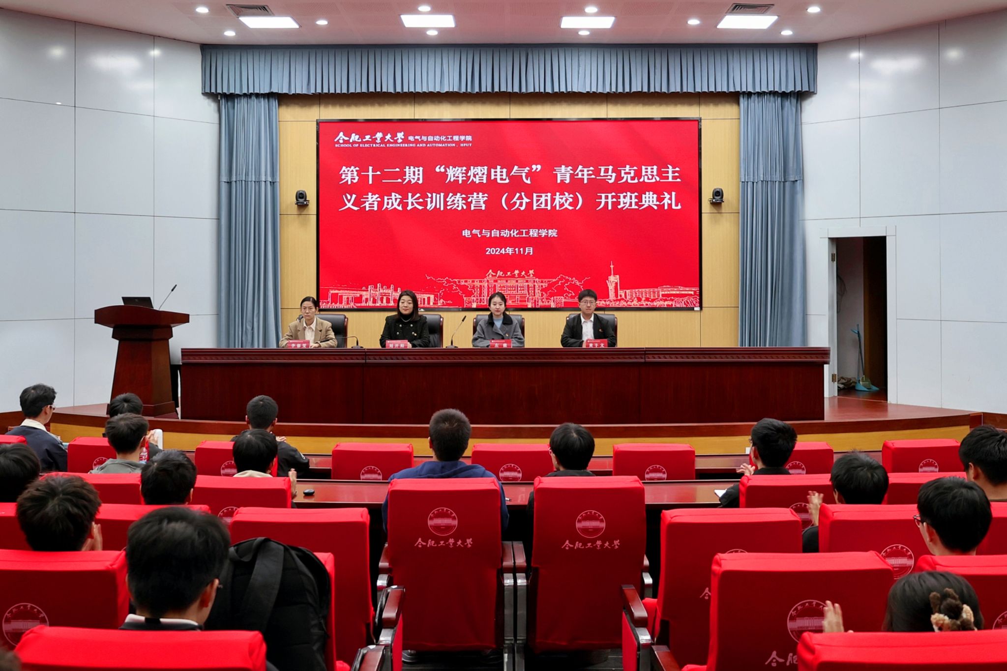 11月8日,分团校开班仪式在学术会议中心一楼大报告厅举行,公司团委、员工工作办公室、分团校相关负责老师及全体学员参加。员工工作办公室副主任兼团委副书记左能宣读了关于同意报名学员参加训练营的决定,员工工作办公室副主任李郁雯宣读了训练营培养方案,分团校班主任黄子文强调了学习纪律要求。员工工作办公室主任兼团委书记刘开阳希望参训同学以坚定意志与饱满热情参与团校各项教育环节,并做到提高思想站位,端正学习态度;砥砺意志品格,锤炼过硬本领;保持初心热爱,矢志不懈奋斗。