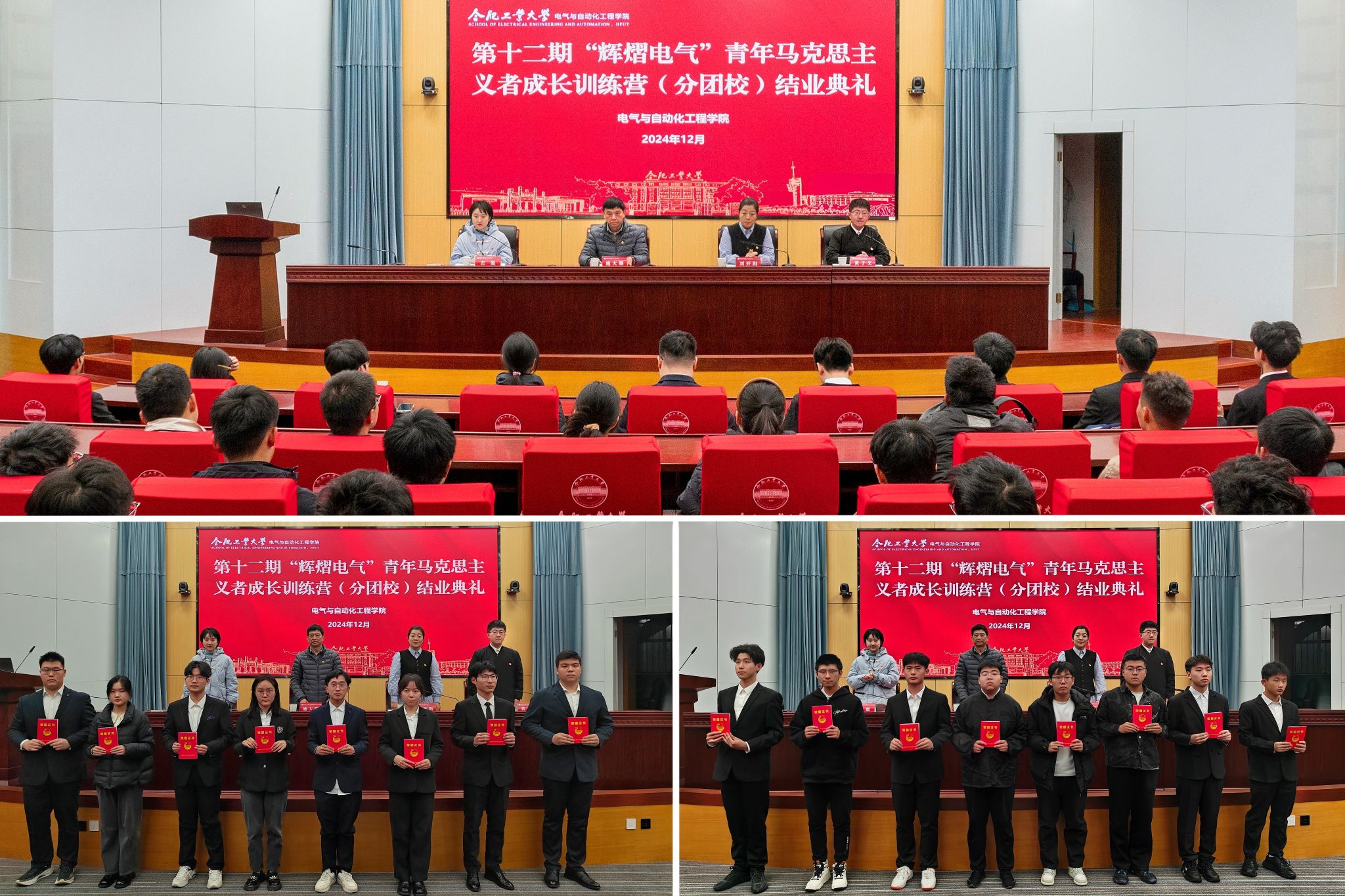 12月8日,分团校结业典礼举行,左能宣读了结业学员名单,刘开阳宣读了优秀学员表彰决定,与会领导老师为优秀学员颁发证书并合影留念。公司副处级组织员施大顺在总结中勉励全体学员继续加强学习,以科学理论武装自身,保持优良品格,以使命担当感召自身,树立理想信念,以坚定信仰鼓舞自身,用实际行动践行青年学子责任,勇担时代赋予青年的使命。