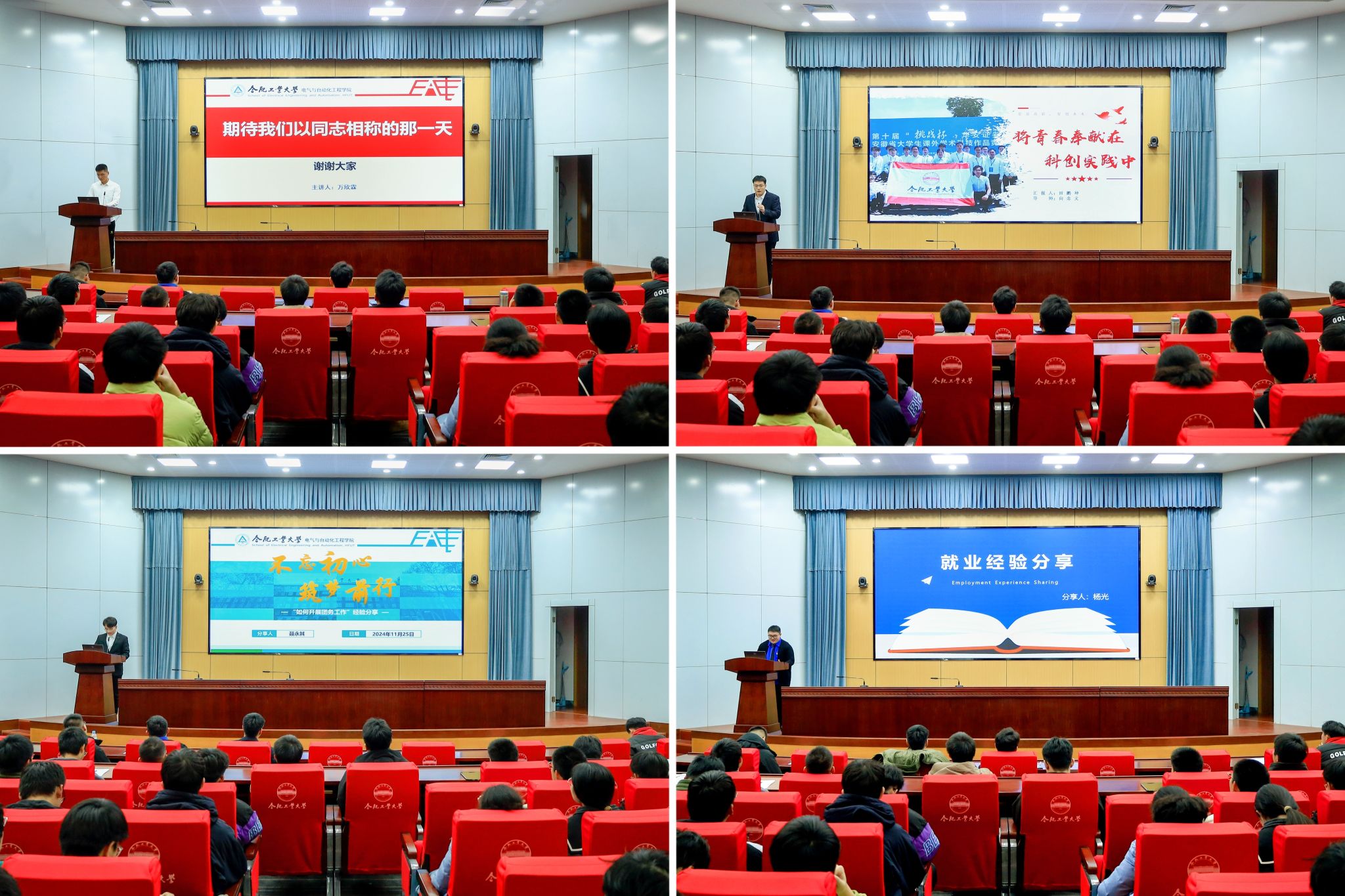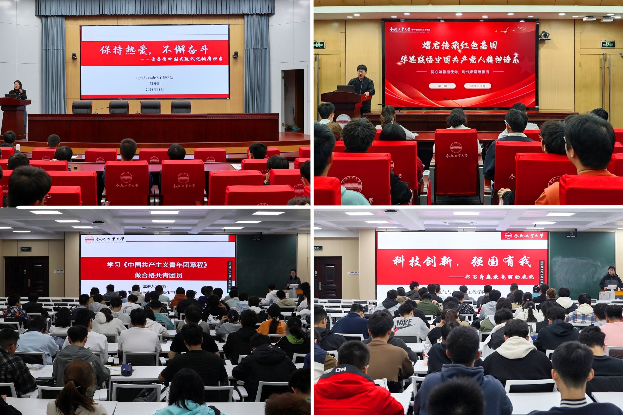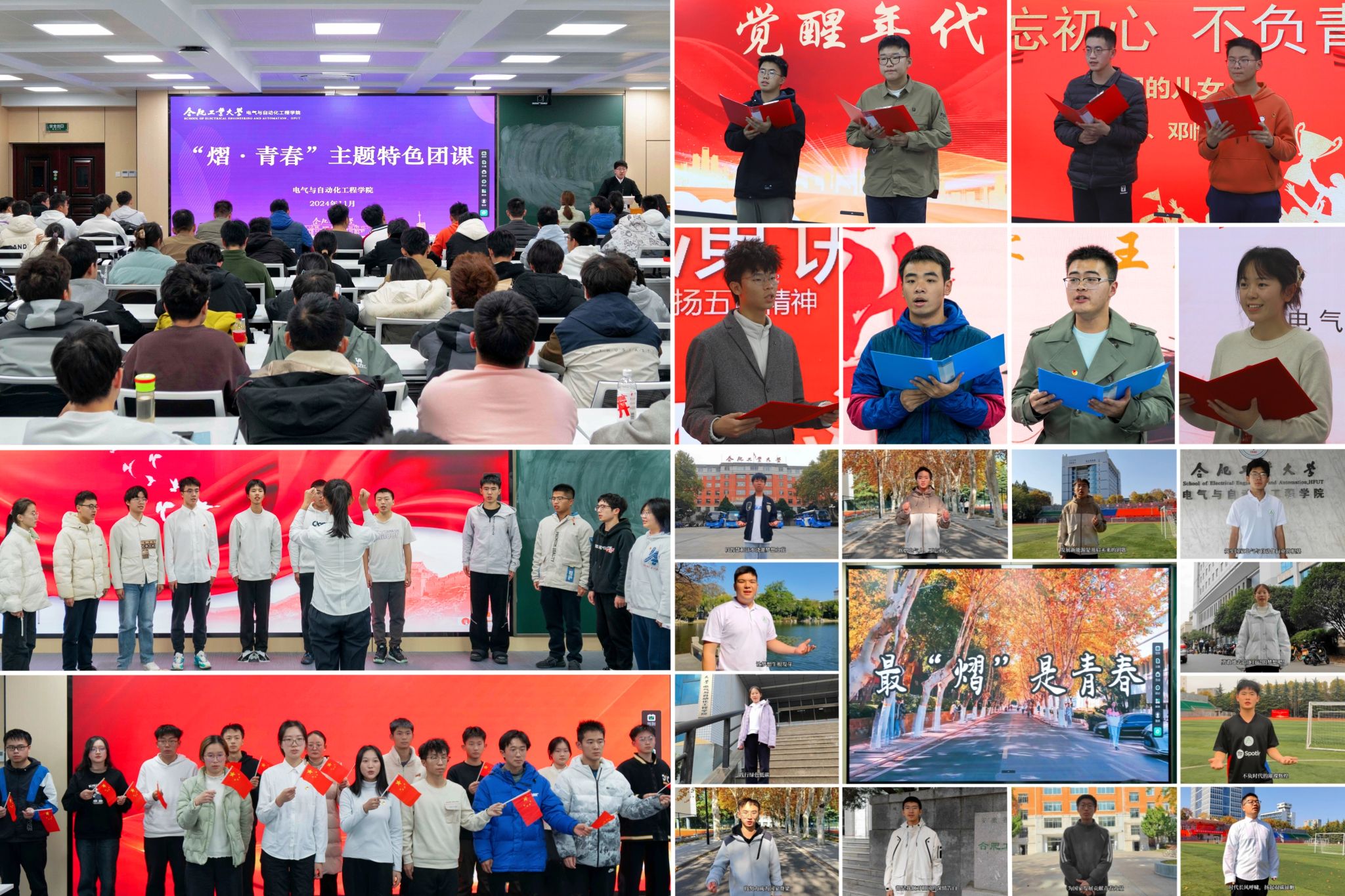熠青,风采育人。11月29日,分团校采取“集中备课、分组说课、全员听课”模式,开展了“熠·青春”主题特色团课。全体学员组建六个课程组,分别以合唱、演讲朗诵、图文影像等形式,讲述对于青春的理解。团歌合唱拉开主题团课的序幕;两组演讲在慷慨激昂中展示投身青年事业的坚定决心;十幅摄影作品通过镜头语言传递青年身影与青春风采;六位朗诵者在深情流露中表达对于青年使命的理解。十二名同学以《最“熠”是青春》校园微视频,为青年电气人献上诚挚寄语;二十余篇短文聚焦“我和祖国共成长”,书写当代青年的心路与实践历程;合唱《我和我的祖国》则为团课画上圆满句号。主题特色团课充分彰显了电气学子的精神风貌,旨在引导青年员工群体积极踊跃参与团学活动,提升体验感与获得感。
