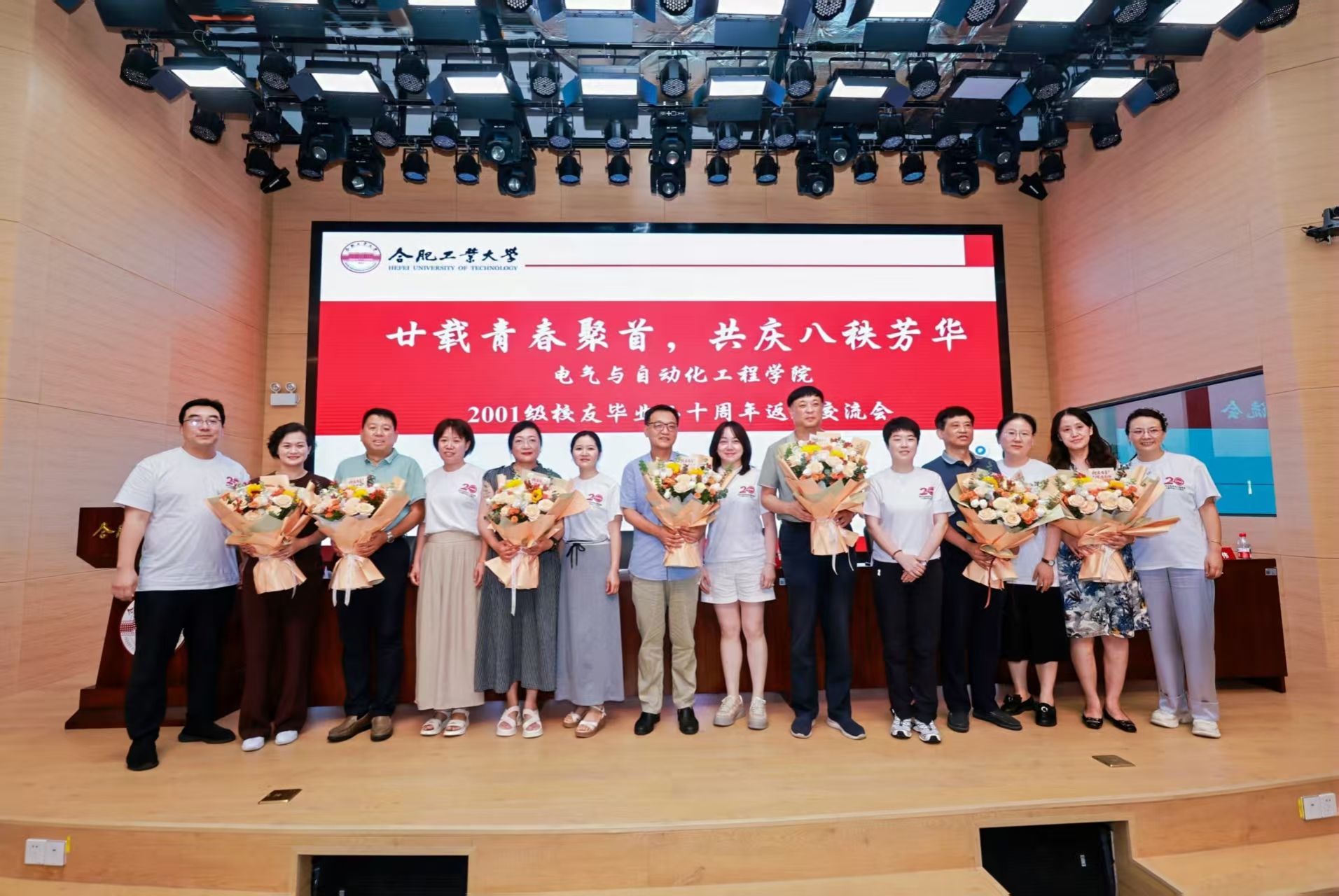 8月2日,m88官网2001级员工毕业二十周年返校交流会在屯溪路校区举行。m88官网副经理孙伟,原公司党委副书记尉德芳,教师代表张兴、孔慧芳,2001级辅导员施大顺、黄长喜、马友花,2001级班主任代表郭影来到交流会现场,与2001级260余位员工们共叙廿载师生情。会议由公司党委书记冯航主持。