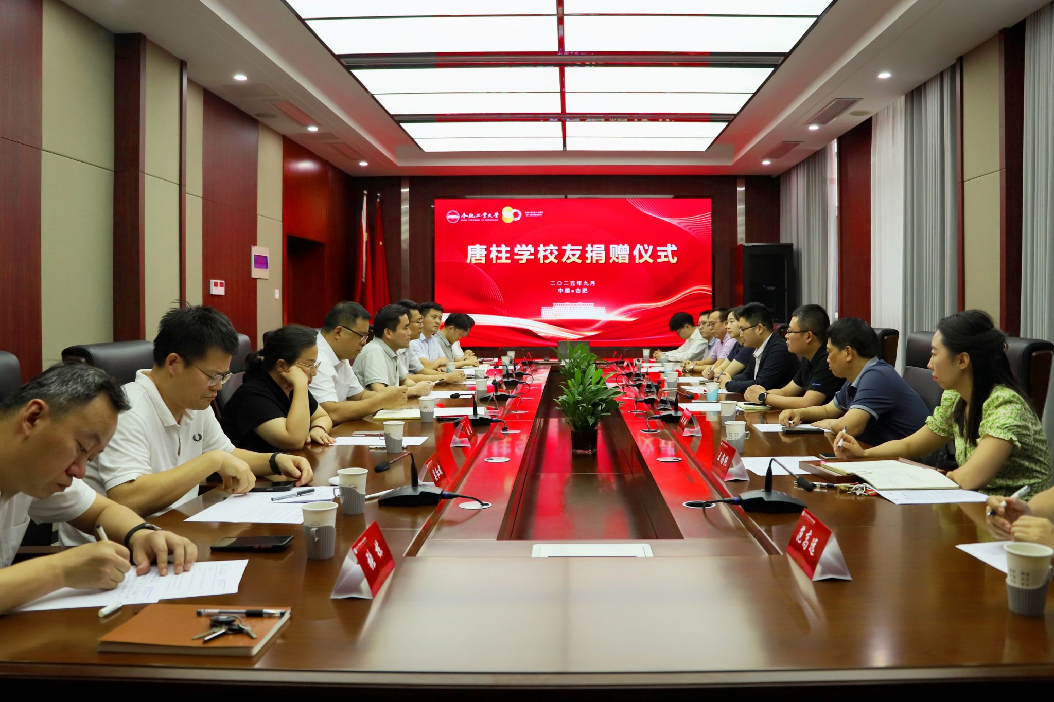 捐赠人代表陈永明介绍了公司发展现状,他表示唐柱学员工对母校常怀感恩之情,始终将“厚德,笃学,崇实,尚新”的校训铭记于心,致力于服务国家重大战略需求。此次捐赠100万元用于团队建设,未来将继续深化产学研合作,巩固校企交流平台,供给优质就业岗位,为母校事业开拓创新提供持续支持。