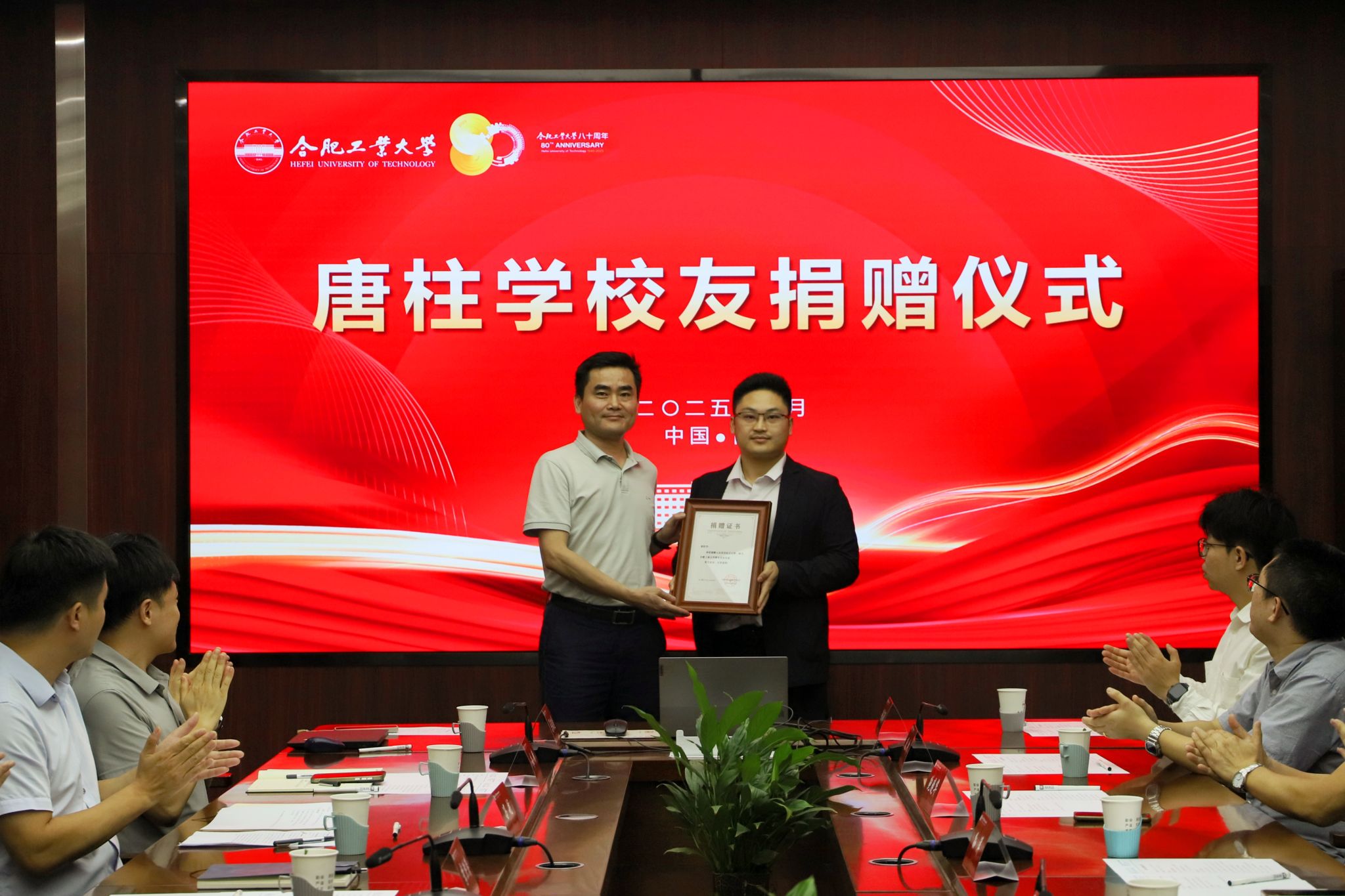 捐赠仪式上,严福平向陈永明颁发捐赠证书,对唐柱学员工慷慨捐资,支持与回馈母校的善举表示衷心感谢。他指出,唐柱学员工在校期间积极参与优良院风与学风建设,毕业后持续引领行业革新与企业发展,作为汇川技术股份有限公司创始人之一,主导数字化转型项目,积极推动工业自动化及新能源领域产品和管理创新,展现出卓越的创新精神。严福平表示,唐柱学等杰出员工在学界业界做出突出贡献并反哺母校,生动诠释了“工业报国”的精神传承与工大学子情系母校的赤城之心,公司将妥善运用捐赠资金,持续联系员工、服务员工、成就员工,实现双向奔赴。