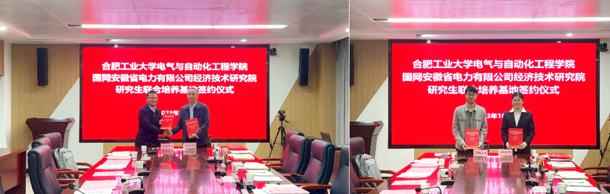 10月12日上午,m88官网—国网安徽省电力有限公司经济技术研究院研究生联合培养基地签约仪式暨交流座谈在逸夫楼1009举行。双方将在新型电力系统规划与运行领域的人才培养、发展战略、实验室共享联建及联合技术攻关等方面开展深度合作。