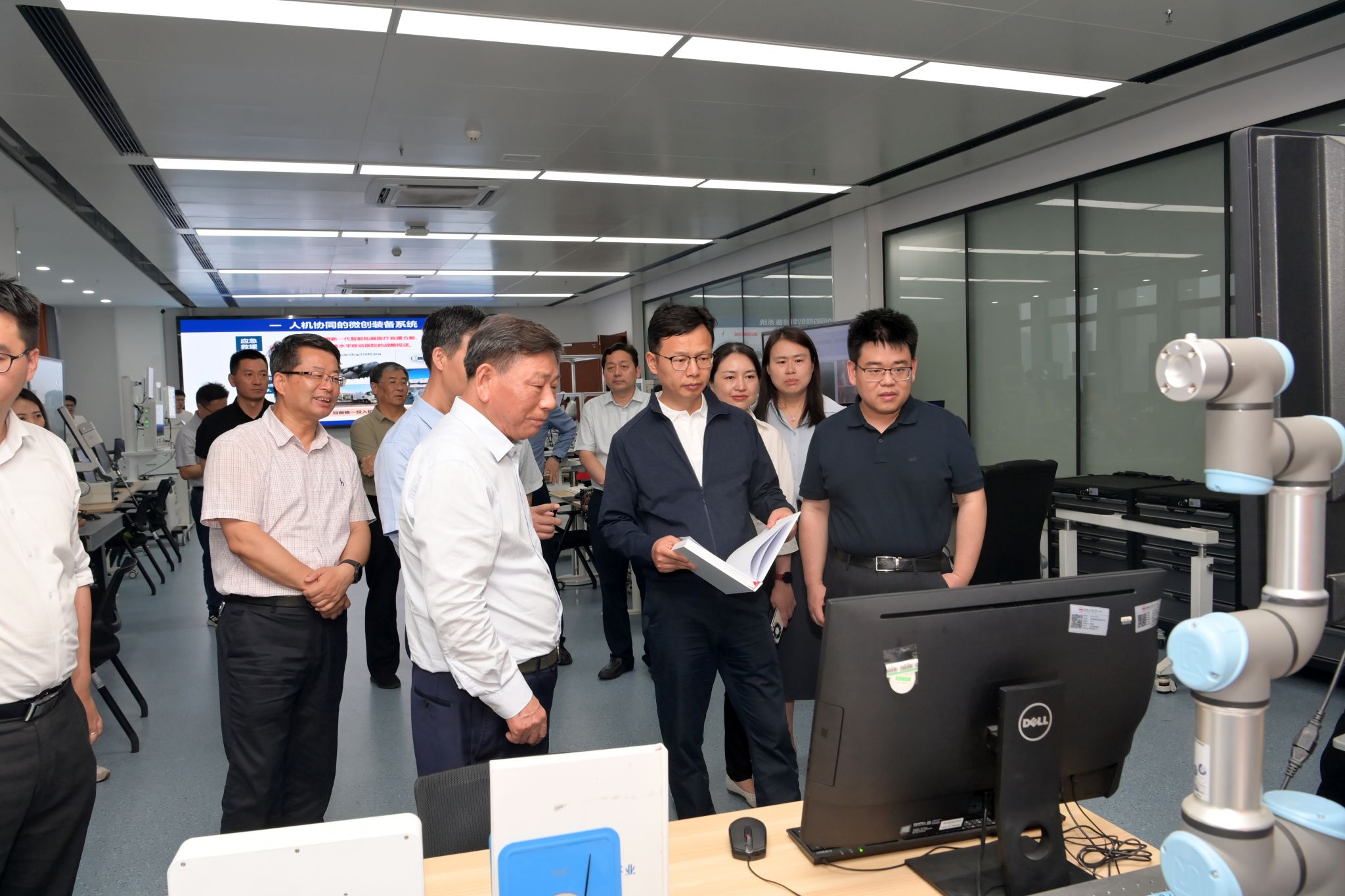 在电能高效高质转化全国重点实验室,赵俊强一行认真听取了科研团队在新能源发电与智慧电力、功率半导体与电力变换、智能测控与新能源汽车、雷电防护与特高压装备等领域的最新研究成果汇报,详细询问相关技术研发原理及应用领域情况,并勉励团队要加强创新能力与产业需求对接,不断提升转化数量、提高转化质量、提速转化效率,以科技创新赋能新质生产力。在工程管理与智能制造研究中心,赵俊强一行听取了杨善林院士关于公司培养拔尖创新人才、推进“双一流”建设等情况介绍。结合展板、实验模型和实验装置,赵俊强参观调研了空天系统智能管控实验室、医疗机器人与智慧医疗健康管理实验室以及智能制造工程管理实验室,对科研团队取得的丰硕成果给予高度评价,并鼓励他们继续瞄准国际科技前沿和国家重大需求发力,加强原创性、颠覆性科技创新,更好服务国家高水平科技自立自强。