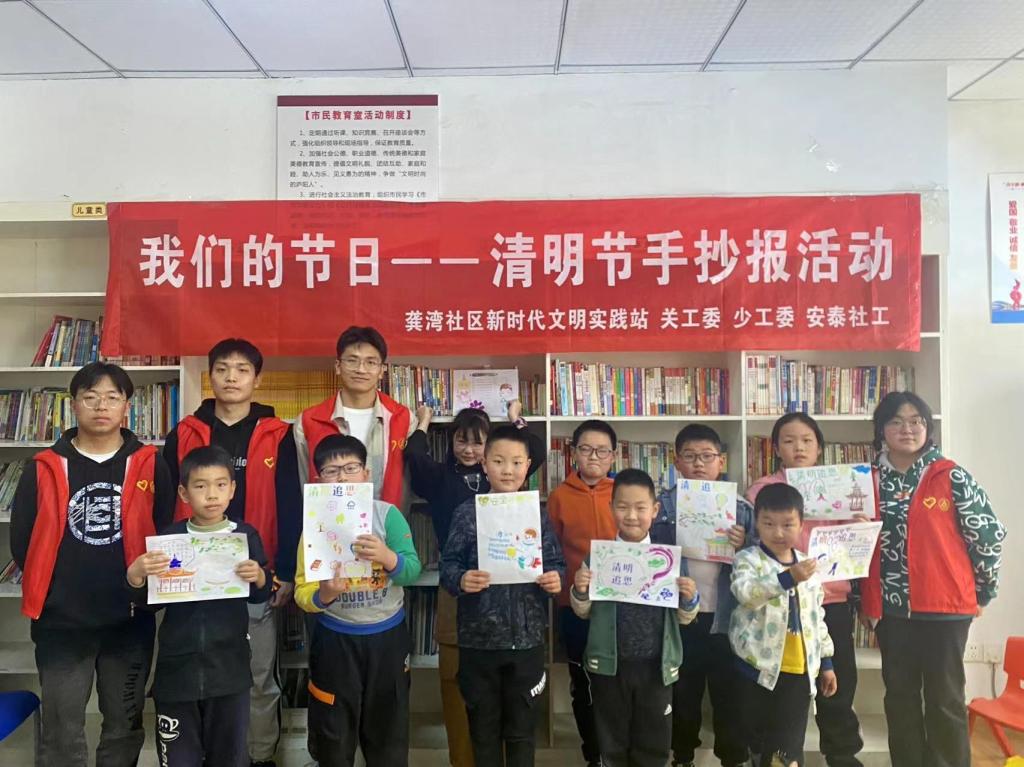 为增强社区儿童对传统文化习俗的了解程度,弘扬优秀文化,领悟文化内涵,坚定文化自信,4月2日,m88官网阳光志愿服务中心志愿者前往龚湾社区开展“我们的节日——清明节手抄报”志愿服务活动。