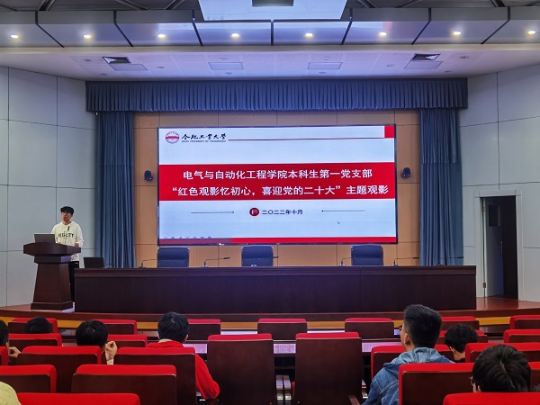 10月7日晚,m88官网本科生第一党支部在屯溪路校区学术会议中心大报告厅举办了“红色观影忆初心,喜迎党的二十大”主题观影活动,党支部全体党员、预备党员、发展对象和积极分子参加活动。