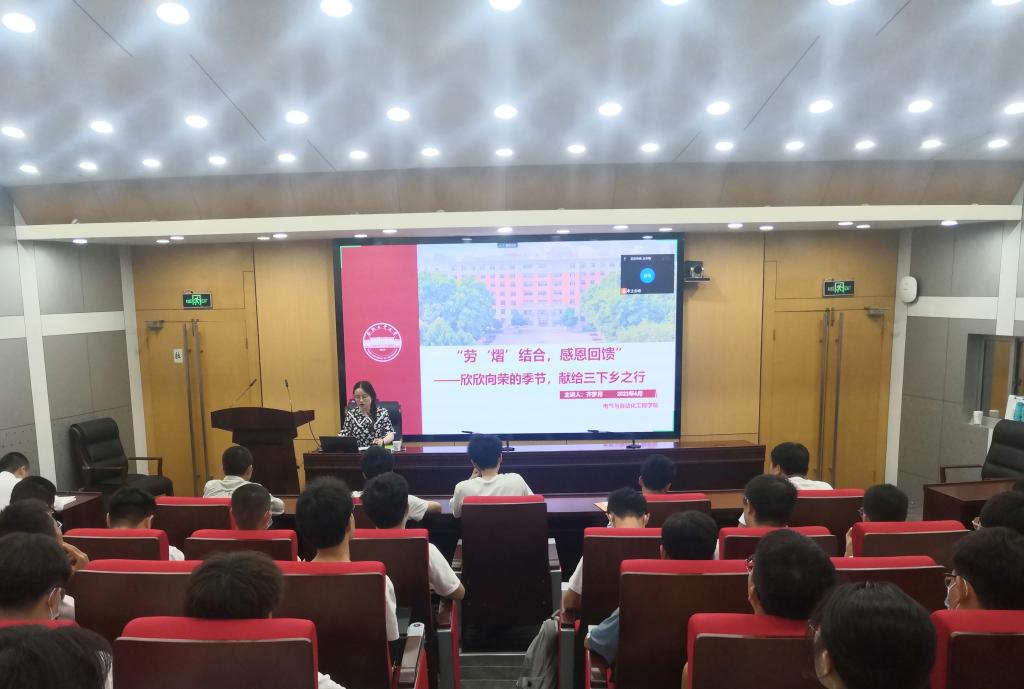 6月14日晚上,m88官网在学术会议中心小报告厅开展公司发展型资助活动“劳‘熠’结合,感恩回馈”——欣欣向荣的季节,献给三下乡之行。本次会议线上线下相结合,主要面向公司家庭经济困难员工进行活动解读和宣传动员。