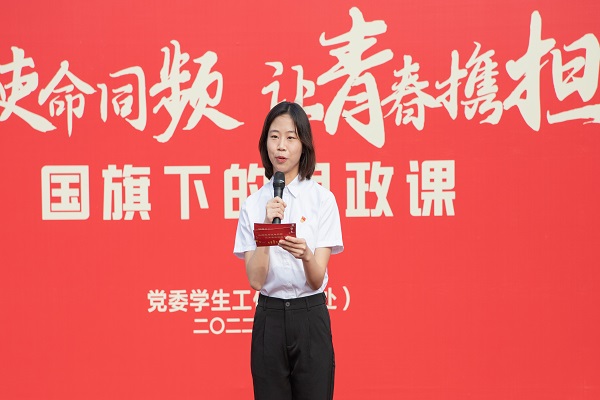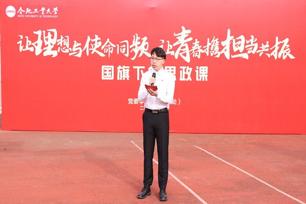 升旗仪式后,2019级电气工程及其自动化创新实验班董磊同学在国旗下作《跑出新时代工大青年的青春“加速度”》主题演讲,呼吁新时代工大青年继续在工业报国的征途上接力奔跑,珍惜时光、担当使命、接续奋斗、久久为功,用踏实苦干证明工大青年的奋发有为,将青春挥洒在祖国和人民最需要的地方,用实际行动诠释当代青年的使命和担当。