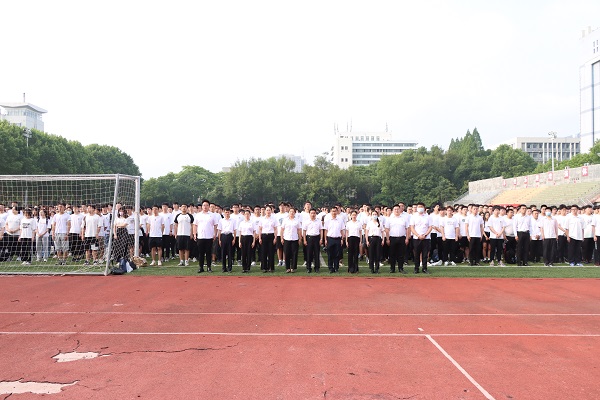 6月13日清晨,m88官网“让理想与使命同频,让青春携担当共振”主题升旗仪式暨国旗下的思政课在屯溪路校区西操场举行,公司相关负责人、辅导员以及全体本科生、研究生参加活动。