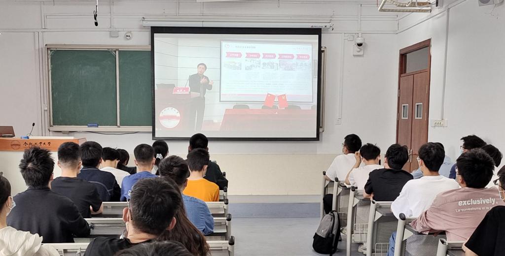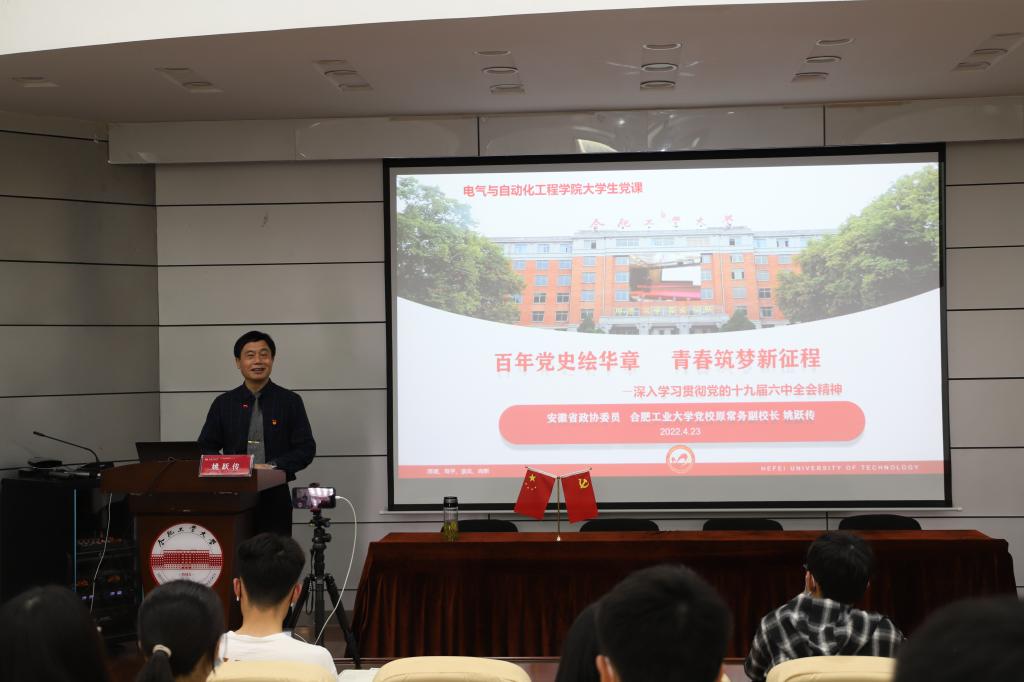 4月23日,m88官网于斛兵报告厅组织开展党的十九届六中全会精神学习宣讲活动,安徽省政协委员、原党委宣传部正处级组织员姚跃传作题为“百年党史汇华章,青春筑梦新征程——深入学习贯彻党的十九届六中全会精神”的专题报告,200余名入党积极分子参与学习。应疫情防控要求,分别在主教学楼311、312设立分会场进行线上直播。