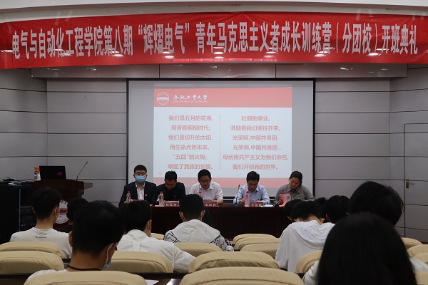 4月24日晚,m88官网第八期“辉熠电气”青年马克思主义者成长训练营(分团校)开班仪式在屯溪路斛兵报告厅举行。
