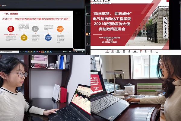 寒假期间,公司积极动员20位国家奖学金获得者全员担任资助大使,利用寒假员工返乡这一契机,引导和组织开展资助政策“云宣讲”,受益面覆盖1000余名家乡中小员工。17级自动化专业葛笑同学针对母校员工开展线上资助政策解读;电气专业闫兴园同学和家乡员工讲述了自己在国家和公司资助政策下自强进取、安心学习的经历,并建立qq群,将老员工资助政策文件分享给母校员工,并开展一对一交流,帮助他们化解后顾之忧。17级智能电网专业葛晓璐同学有感而发:“我们受益于国家资助,自当常怀感恩之心,用心去传播爱的种子,在他人需要帮助之时,传递关怀和温暖。”