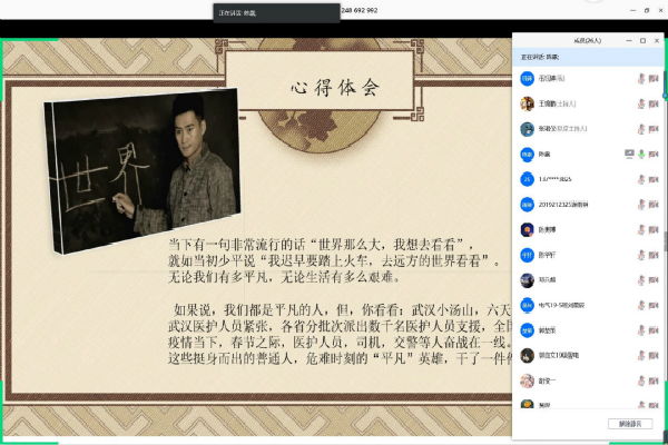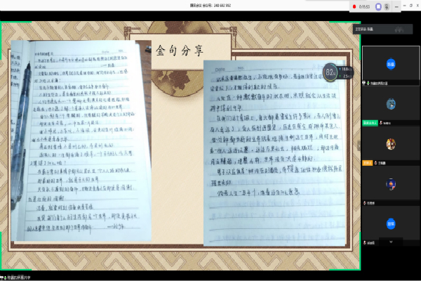 经过班级推荐,公司初评,最终选出30篇优秀读书笔记。3月29日下午,30位获奖同学参加了线上读书分享会。依托腾讯会议平台,同学们畅所欲言,详细阐述了读书过程中的心得与收获,并积极分享自己的读书笔记。活动中,针对同一本书,多个同学从不同的角度分享了自己的看法与见解,如《万历十五年》,有6位同学从各自理解的范围对该书进行了背景分析、内容阐释、文字欣赏与主旨理解。在整个分享会过程中,同学们描述了所选书籍的精彩内容,同时积极与当下实事紧密结合,以丰富多彩的分享模式、精妙绝伦的文字表达和饱满流畅的情感渲染,向其他同学展示了自己创作读书笔记的初衷以及阅读该书籍对自己的影响,李千年同学在分享时还别出心裁地用陕西话念了《秦腔》中的一段文字,获得一致好评。