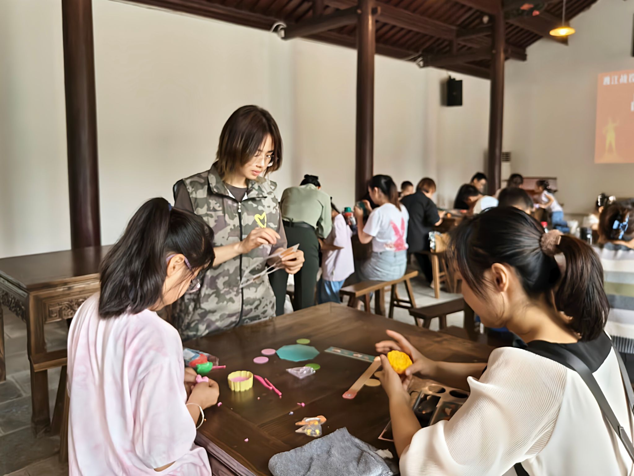 赓续红色血脉,感悟别样中秋。9月29日,志愿者在渡江纪念馆开展带领小朋友们开展“战火中的中秋”主题活动。讲解介绍环节,志愿者向小朋友们介绍了中国解放战争的发展历史,讲述了那个时期发生的感人故事,带领孩子们重温峥嵘岁月,深刻了解历史,厚植爱国情怀。随后,志愿者以“战火中的中秋”为主题,带领孩子们回顾1937年淞沪会战、1938年武汉保卫战、1939年第一次长沙会战等战争期间度过的的中秋节,本是温暖团圆之日,却湮没在炮火岁月中,许多革命先辈们为了和平解放献出了宝贵的生命,志愿者带领孩子们追忆先辈们艰苦奋斗、无私奉献的伟大精神,赓续红色血脉,也让孩子们更加珍惜眼前的幸福生活。最后志愿者带领孩子们共同制作月饼,加深对优秀传统文化的了解,寄托对先辈的敬爱之情。