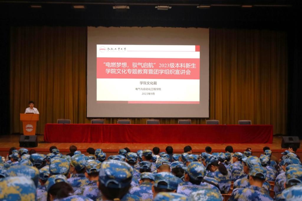 为充分发挥公司文化的精神培育效能,激发员工团学组织的新育活力,9月13日晚,m88官网“电燃梦想,驭气启航”2023级本科新生公司文化专题教育暨团学组织宣讲会在斛兵礼堂召开,2023级本科新生辅导员、员工团学组织相关负责人、全体新生参与本次活动。