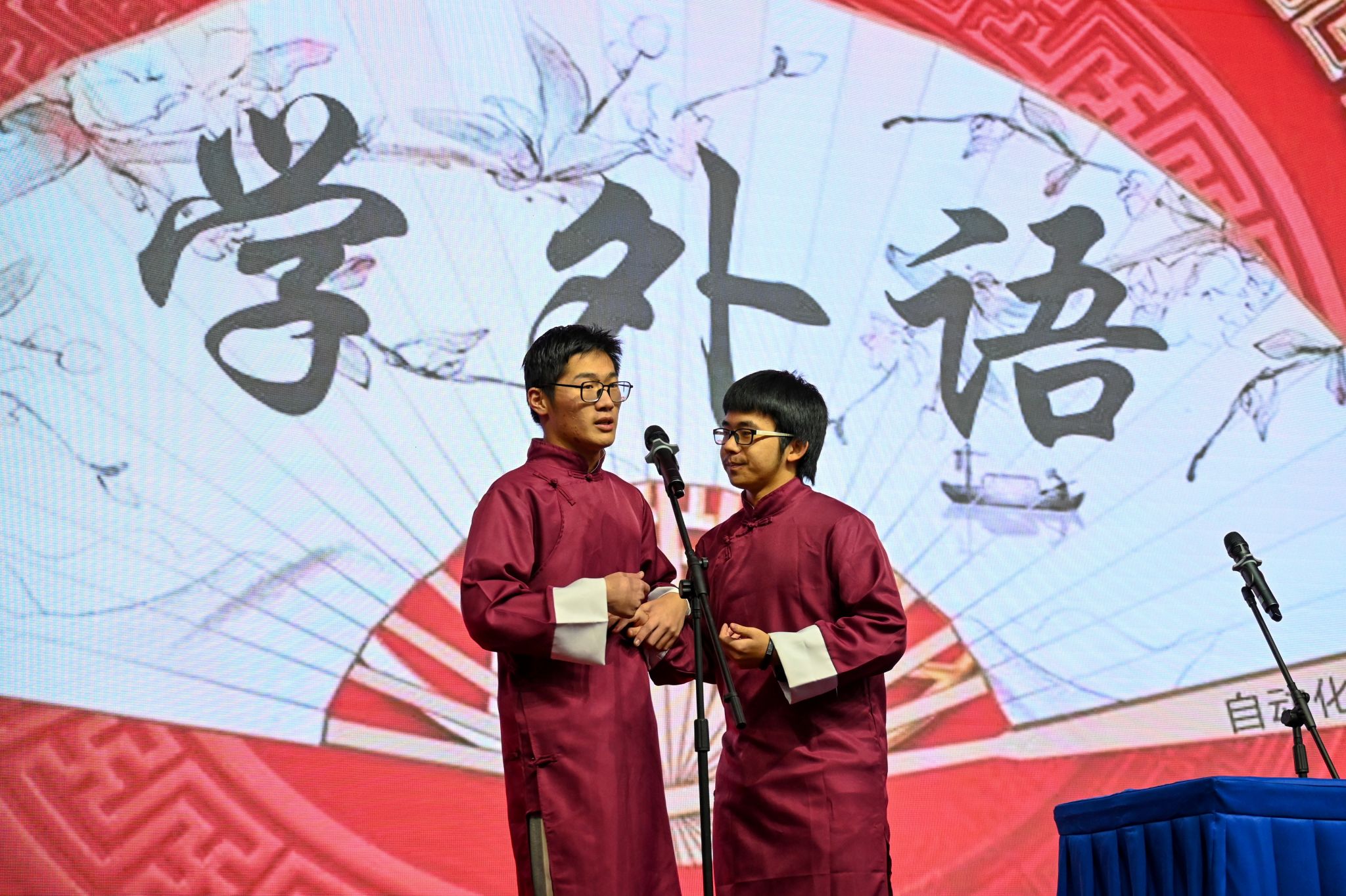 在第三篇章中,自动化23-1班的《盛世中国》、相声《学外语》以朗诵的形式表达了新时代的青年人对于改革四十余年的赞美,以诙谐幽默的方式展现出文化交融的繁荣发展。电气23-5班的小品《时间都去哪了》通过刻画主人公的内心活动,描绘了面对时间抉择的心里矛盾,呼吁大家提升自控力和专注力。最后,机器人23-2班的合唱《平凡之路》传递了积极向上的人生态度和昂扬奋发的青春风貌,在强烈的共鸣中全场全场共唱,将整场汇演推向高潮。