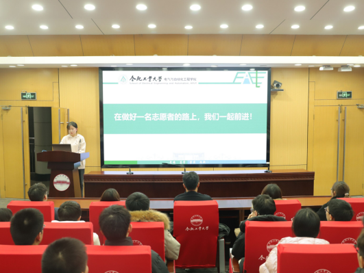 首先,志愿服务中心负责人赵静怡对本年度志愿服务工作进行了总结汇报,2023年阳光志愿服务中心以“挺膺担当,奋斗实干”为主题,打造“‘巷’约青春,‘熠’启守望”社区治理与邻里守望志愿服务品牌,开展“熠”暖桑榆、“熠”起治理、“熠”伴成长、青年“熠”语、“熠”暖民心、“熠”话双碳系列活动,在前期工作基础上勇于创新,不断扩大志愿服务工作的宽度、深度、高度,打造电气公司志愿服务特色品牌。公司2023年与瑶海区和平路街道、铜陵路街道、包河区芜湖路街道共建志愿服务基地20余个,全年开展志愿服务活动360余次,志愿服务总时长37925.1小时,参与人数5553人,志愿服务工作取得了一定成效。随后,指导老师对阳光志愿服务中心过去一年的工作给予了充分肯定,对全体成员的辛勤付出表示衷心感谢,他结合“奉献、友爱、互助、进步”的志愿服务精神和雷锋同志的先进事迹激励全体同学增强躬身实践、岗位建功的实干担当,涵养乐于助人、公而忘私的奉献精神,磨练艰苦奋斗、敢于斗争的坚韧气质。学会正确看待和处理集体与个人、大我和小我、利他与利己的关系,在服务奉献中实现自我价值,坚守志愿服务初心,坚定担当作为决心,保持服务奉献热心,把志愿服务当作一份事业、一份责任、一种热爱,在服务奉献中提高综合能力,践行青年担当,彰显个人价值,促进社会发展,创造更好成绩。最后,各部门负责人讨论了2023年志愿服务工作中出现的问题和改进措施,汇报了2024年志愿服务工作计划,参会同学就志愿服务工作高质量开展、打造特色品牌等内容进行交流讨论。