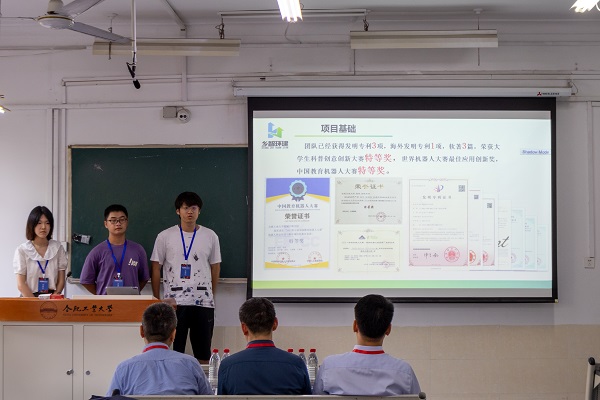 在项目路演环节,选手们精心准备,热情洋溢,充分展示创新产品、发展规划、计划效益等内容。答辩过程中,选手们分别从创新想法、市场分析、产品介绍、项目团队、营销战略、竞争力分析、盈利分析和公司发展等方面进行创新创业项目的PPT演讲。答辩结束后,评委们对答辩人的项目和陈述提出若干问题,项目团队根据提问一一做出解答。此外,评委们在答辩阶段亦针对各个团队的项目在选题、PPT制作等方面提出可行性建议,各参赛队伍将对此次路演作品进一步完善。