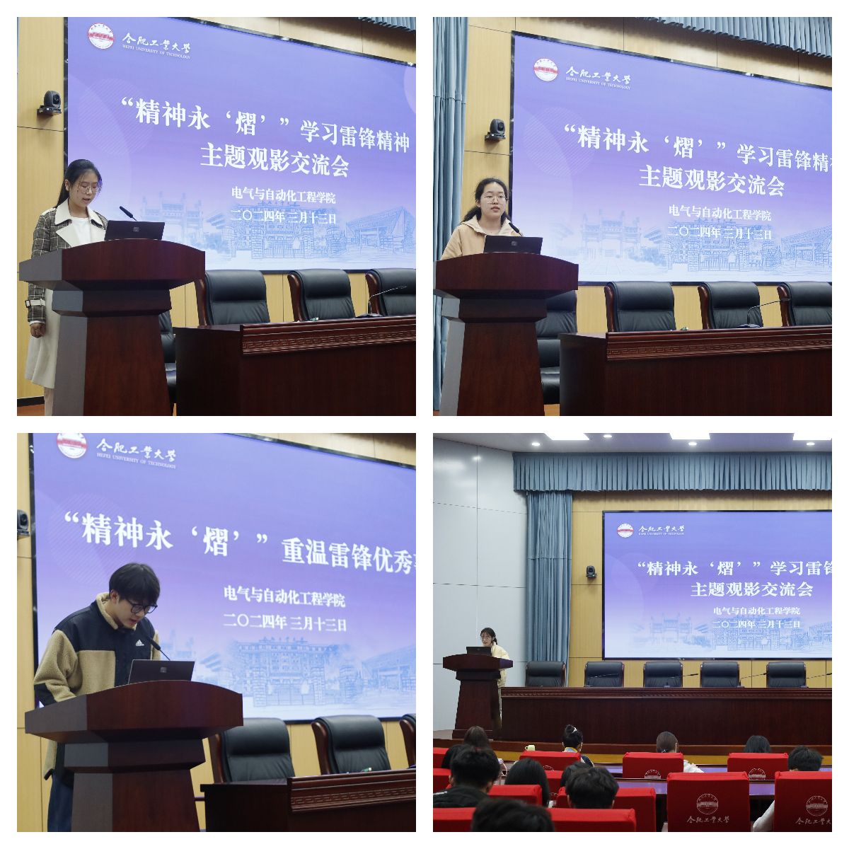 3月13日晚,m88官网在屯溪路校区学术会议中心一楼大报告厅开展“精神永‘熠’”学习雷锋精神主题观影交流会。相关负责老师、各年级志愿者代表、员工党支部积极分子共计200余人参加活动。