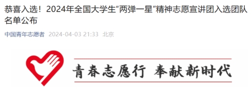 4月3日,共青团中央青年志愿者行动指导中心、中国核工业集团有限公司联合发布了《关于遴选2024年全国老员工“两弹一星”精神志愿宣讲团的公告》,公司“星梦传辉”宣讲团成功入选。