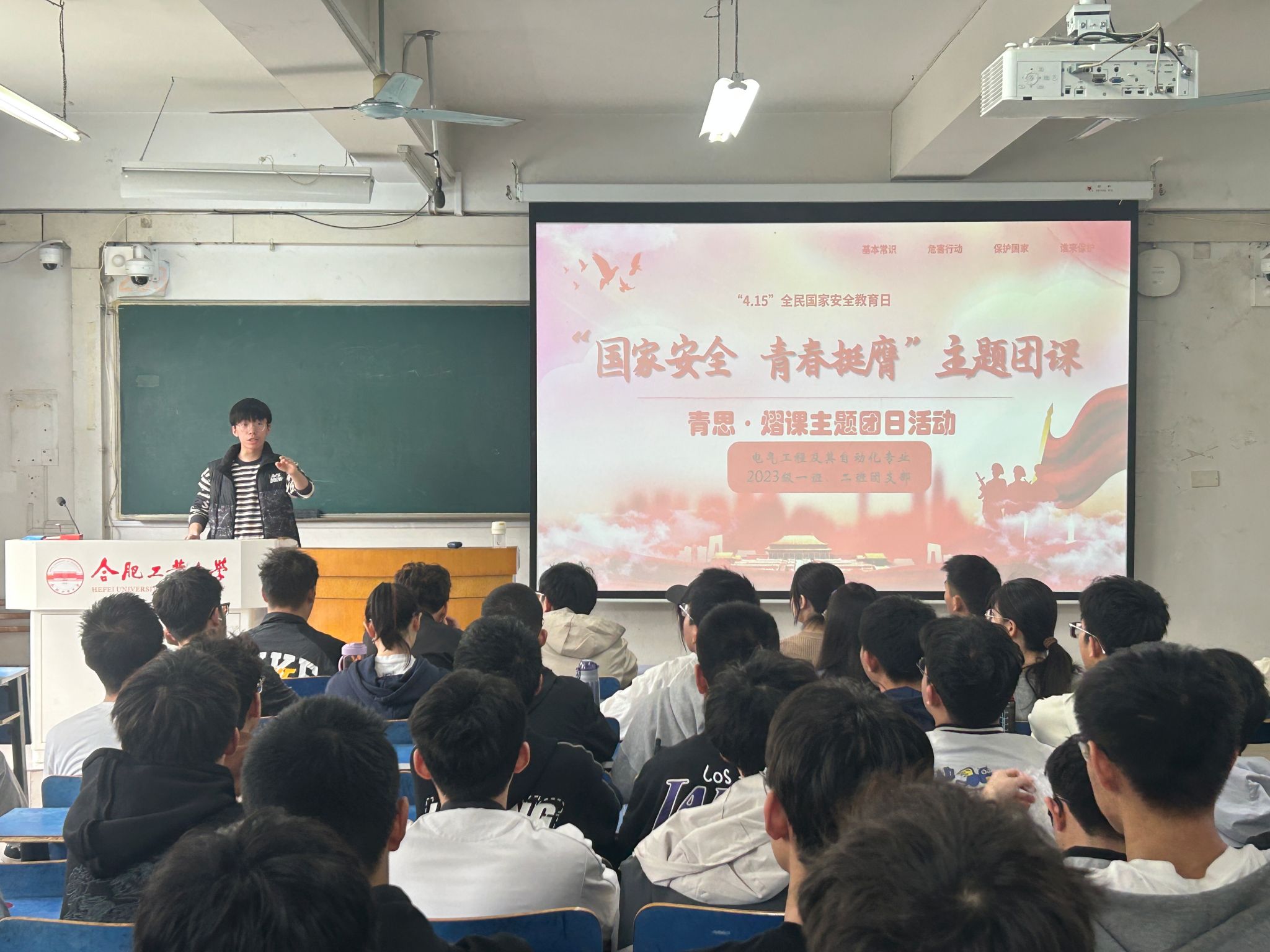 为培养团员青年的国家安全责任感,树立青年的总体国家安全观,筑牢电气学子在维护国家安全上的思想防线,推进总体国家安全深入人心。4月11日上午,m88官网于西二教学楼203教室开展青思·熠课”主题教育暨“国家安全,青春挺膺”团日活动,电气工程及其自动化专业2023级一班、二班团支部全体同学参与活动。