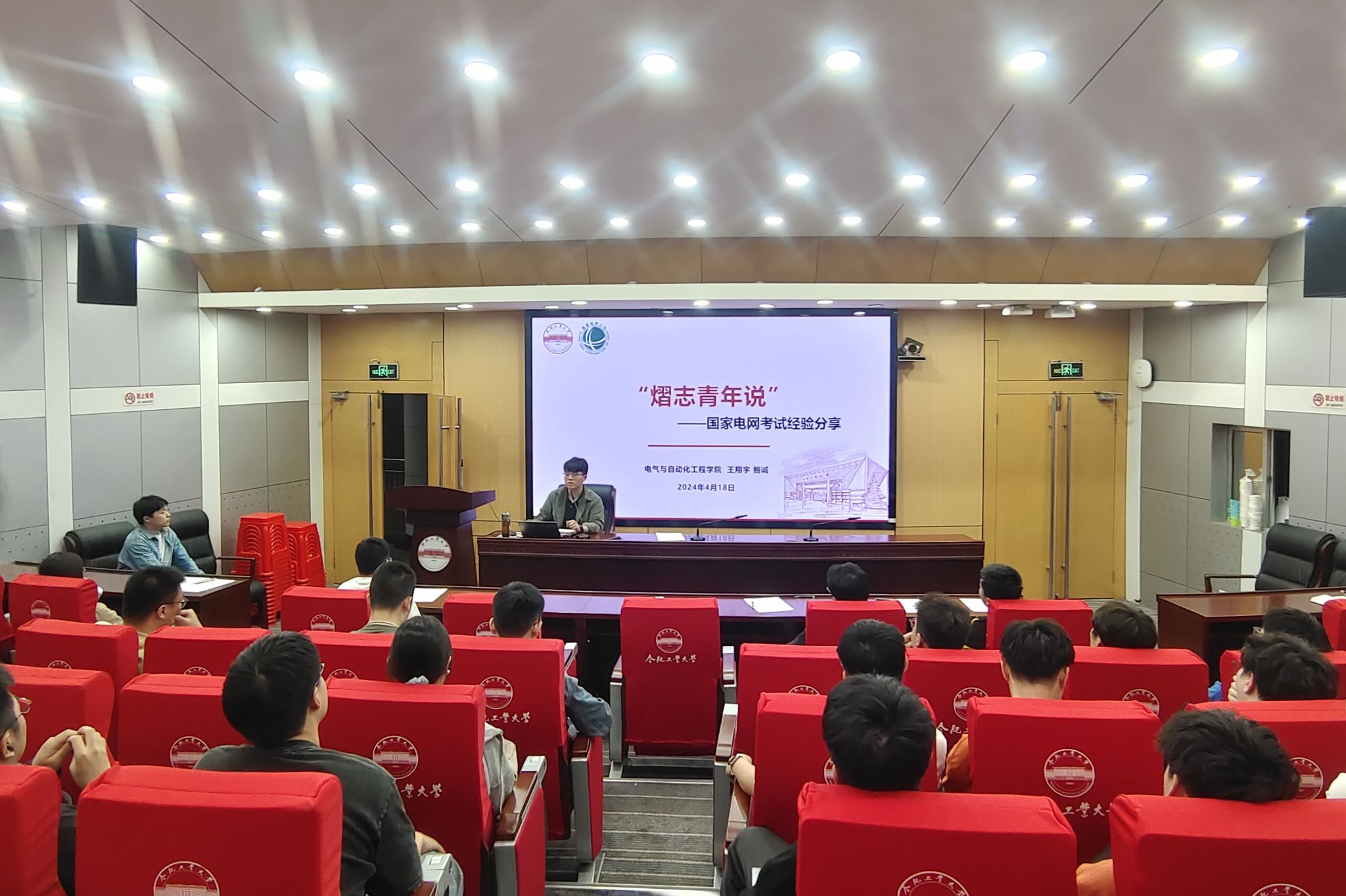 活动在轻松而热烈的氛围中展开。王翔宇以两段有感染力的视频引入,从电力企业概况、国网公司简介、报考形势分析、招聘考试介绍、备考有效方法几个方面展开,结合视频解析、情景再现、问答互动等方式,用生动的故事阐述观点,让与会同学更容易产生共鸣和理解。他认为 “做好抉择,形势分析是方向标;做好规划,考试成绩是入门槛;做好准备,面试技巧是好法宝”。鲍诚以自身备考经验,分享了切实可行的复习计划,他从考试科目与时间限制、基础巩固与知识拓展、题型解析和应对技巧、面试要点与实战训练等四个部分深度分享,旁征博引,生动有趣,现场交流热烈。与会同学纷纷表示,收获满满,受益匪浅。