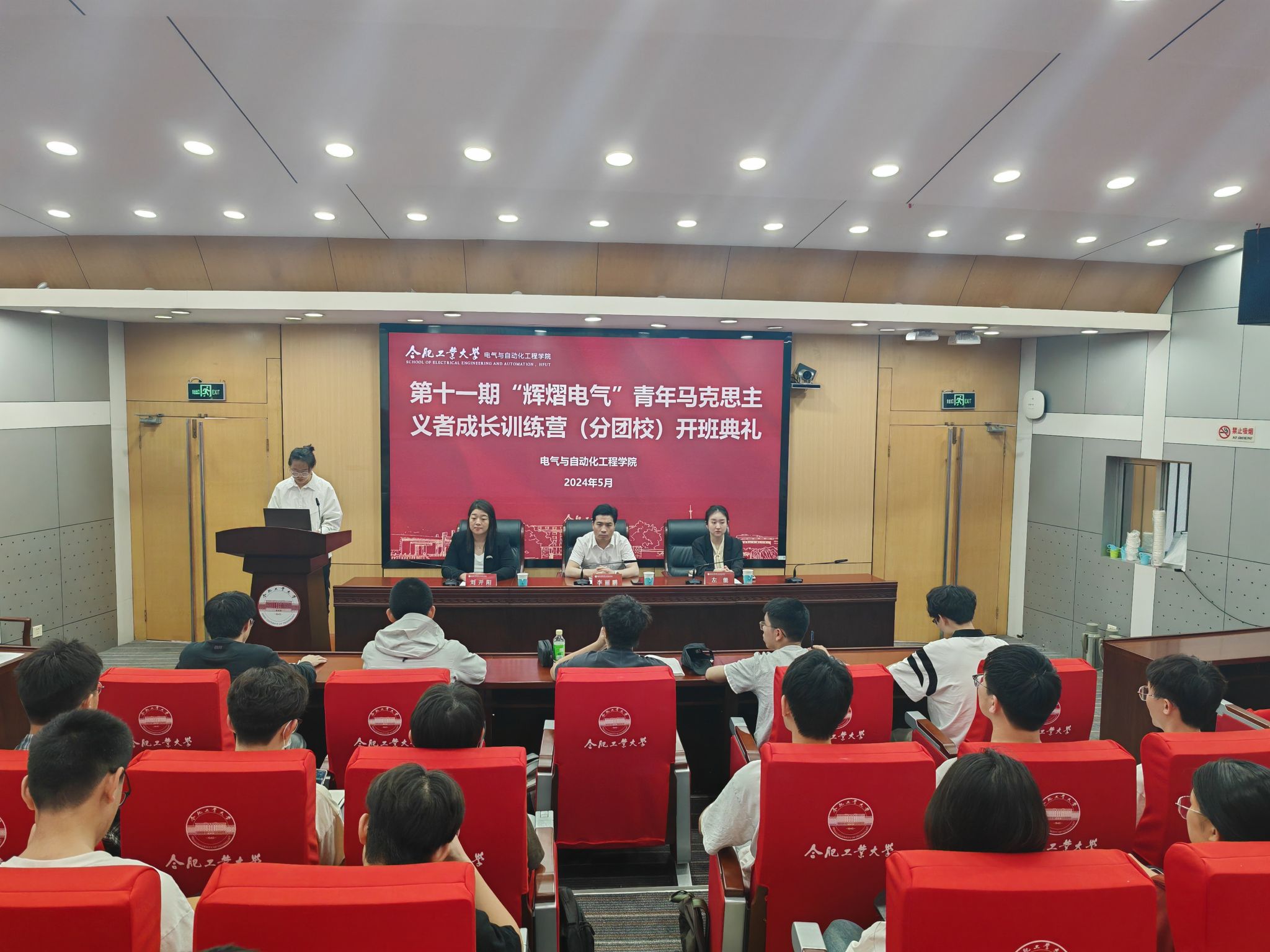 5月9日下午,m88官网第十一期“辉熠电气”青年马克思主义者成长训练营(分团校)开班暨团课第一讲在屯溪路校区学术会议中心二楼小报告厅举行,公司相关负责老师、团校班主任和团校成员参加活动。