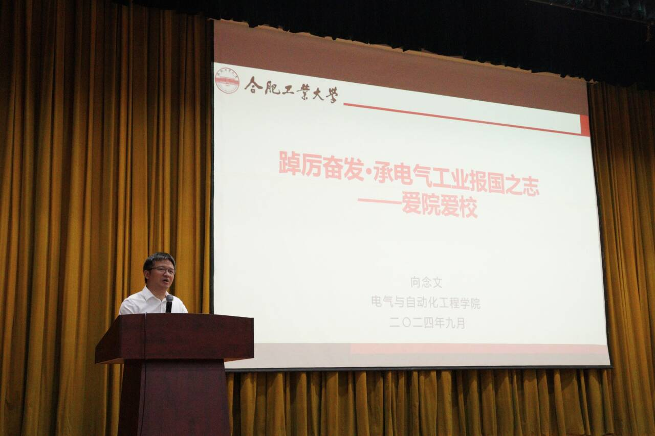 根植爱校深情,逐梦荣校之期。公司经理向念文以《踔厉奋发·承电气工业报国之志》为题,依次讲解了公司发展历史,公司团队建设、团队力量、学科平台建设等情况,以过去公司取得的科研成果为引,深入浅出的引导新生找准专业定位、明确专业价值、内化专业使命,勉励同学们要学会以点带面,不固步自封于小方向、小切口,要多维度、跨方向的建立专业研究互通网,要在“敢坐冷板凳”的孜孜不倦中主动对接国家战略需求,找准机会,突破创新,始终与公司的人才培养目标同向同行,以爱校为基,明确科研底色,以荣校为期,立志工业报国,真正在个人成长中不负小我,在时代进程中不负使命。