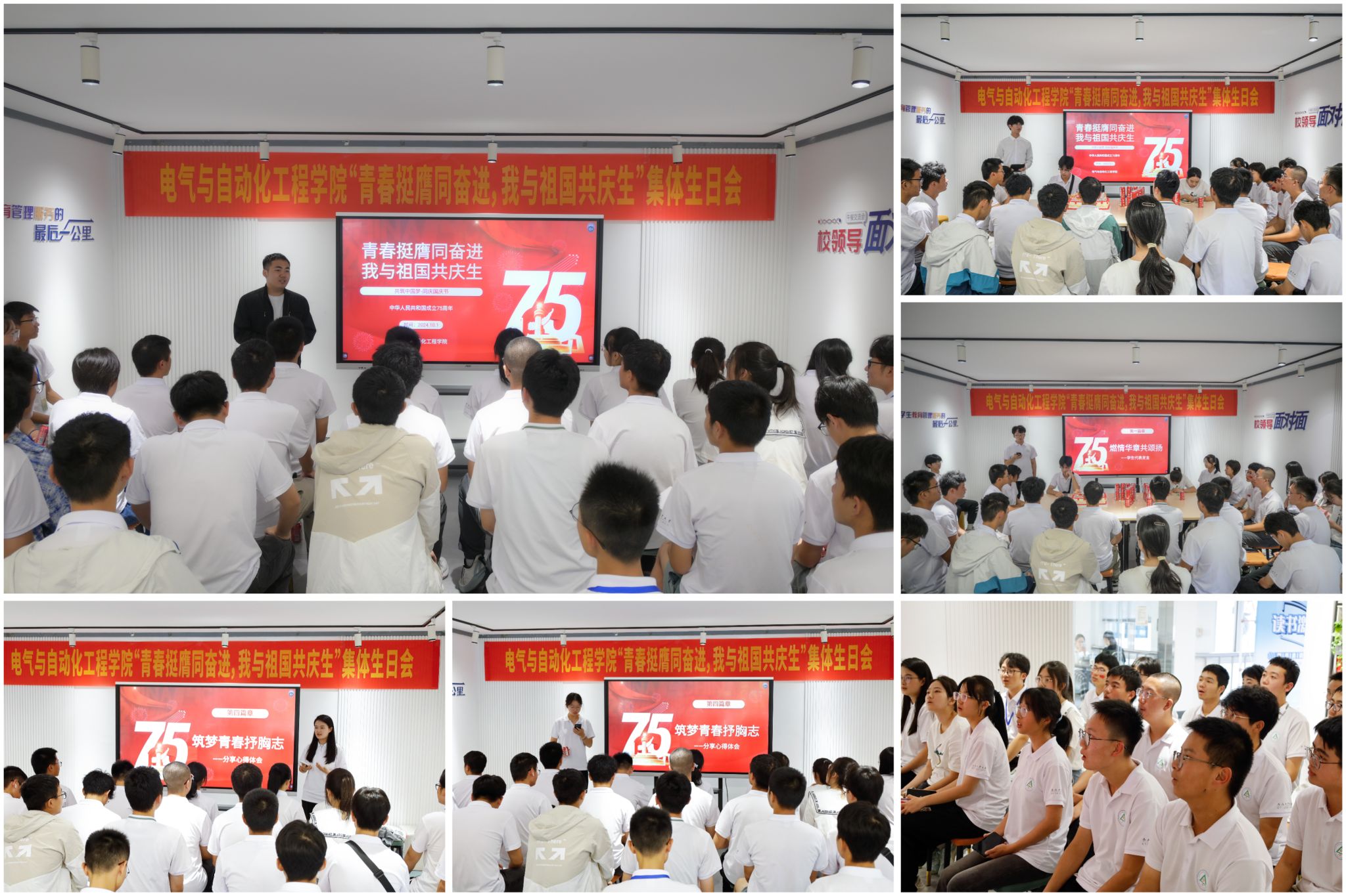 在教师谈理想环节,公司相关负责老师在致辞中谈到,值此国庆节假期、校庆日即将到来之际,大家齐聚一堂一起过集体生日,为祖国祝福、为母校喝彩、为同学庆生,就是让大家感受到国家的繁荣昌盛、公司的蓬勃发展、公司的温暖温馨,铭记峥嵘岁月、扬帆砥砺前行。经过70多年的发展,公司已经成为公司人才培养、科学研究、社会服务的主力军和重要基地之一,一代代工大电气人工业报国,主动服务国家和社会,身为一名电气学子,一是要爱国笃志,永葆家国情怀,二是要澡雪精神,磨炼坚韧心性,三是要求真务实,练就过硬本领,成长为不惧“八面来风”、勇挑“千斤重担”、全面发展的新时代老员工。在员工话成长环节,机器人工程专业2023级2班佘文浩、电气工程及其自动化专业2024级2班陈雨茜、电气工程及其自动化专业2024级3班李文硕、自动化专业2024级2班尹雨涵在发言中谈到,从巍峨的山巅到广袤的草原,从奔腾的江河到浩瀚的大海,祖国用她的每一寸土地孕育了十四亿中国人,身为其中的一分子,也身为一名肩负重任的青年,更要在学习生活中惜时光、勤奋学习、勇挑重担、直面挑战、拒绝躺平,用自己的实际行动,为国家增光添彩,为母校增光添彩!