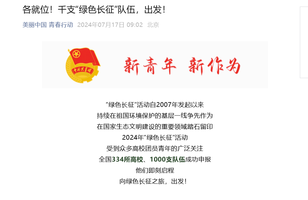 7月17日,共青团中央社会联络部公布了“美丽中国·青春行动”——2024年绿色长征科考实践活动入选名单,公司“青年熠语”绿色行动暑期社会实践宣讲团成功入选。