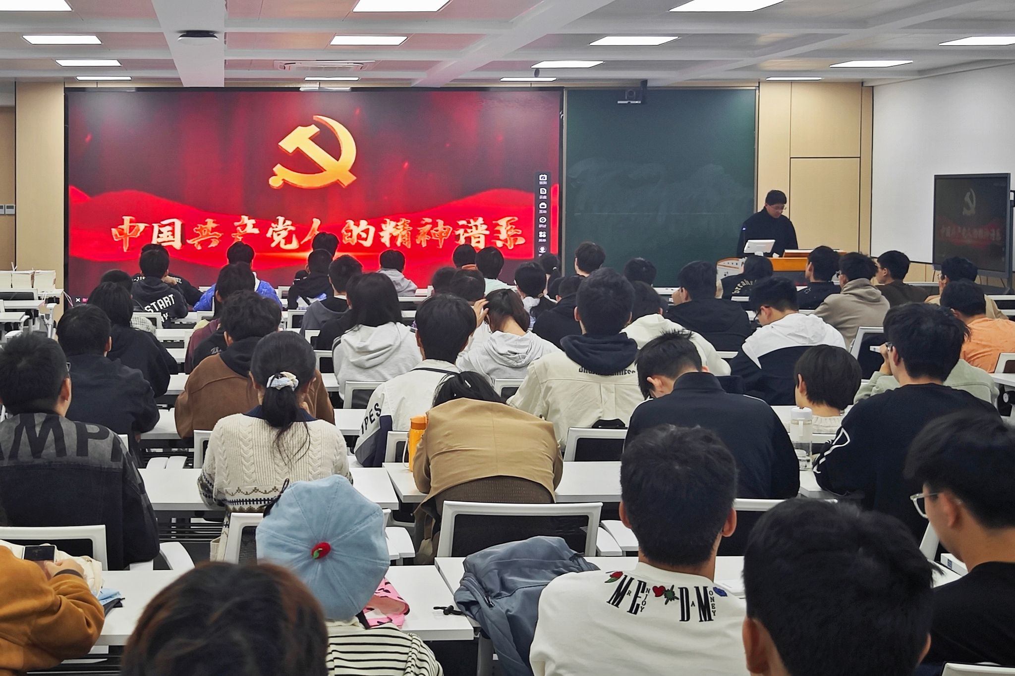 10月26日,m88官网分党校第十九期老员工入党积极分子班于逸夫楼1005教室开展了“学思践悟中国共产党人精神谱系”主题实践,分党校相关负责老师与全体学员参与实践活动。