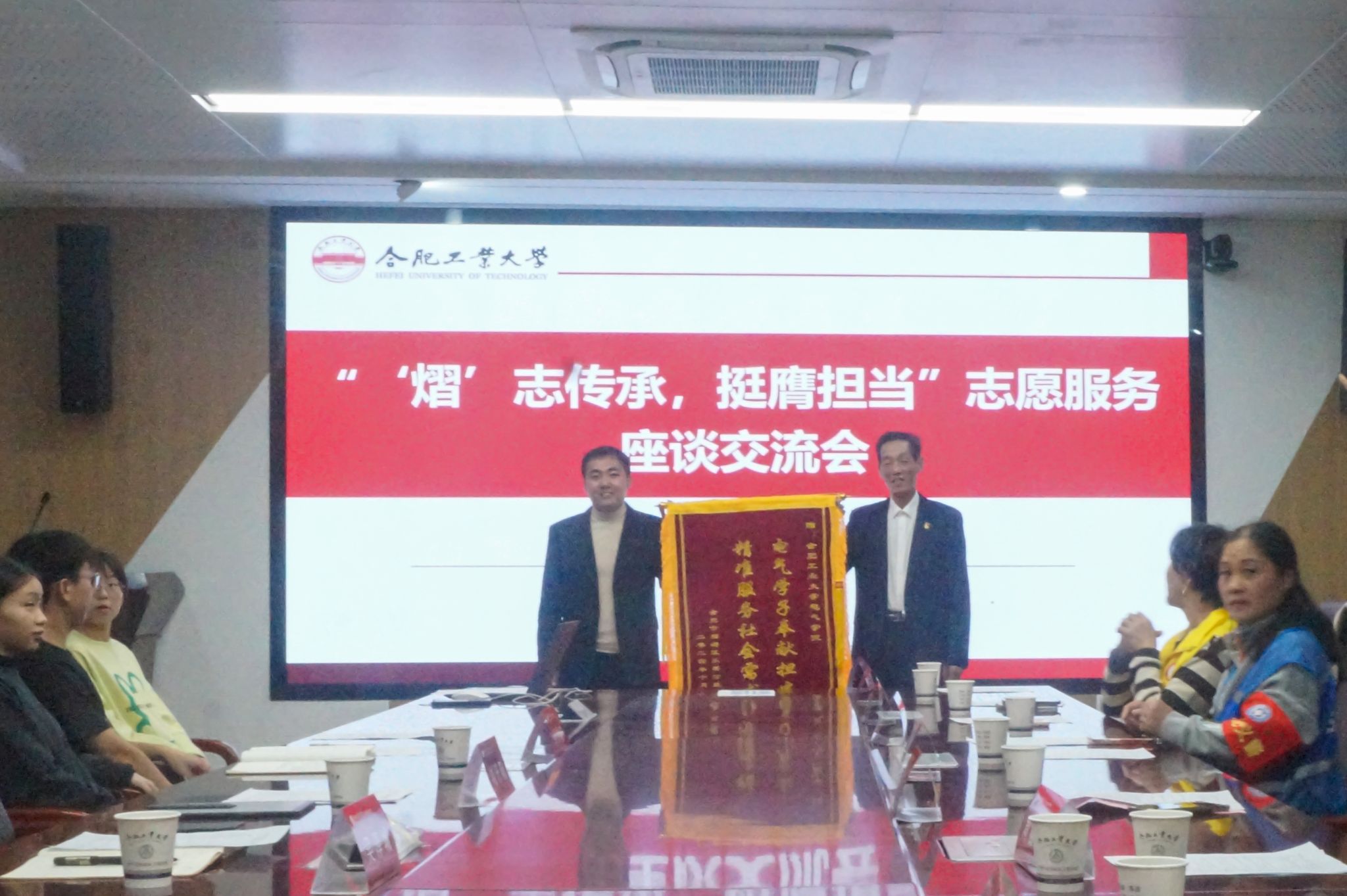 刘开阳对瑶海区乐善公益服务中心志愿者来公司交流表示热烈欢迎,对双方前期开展的志愿服务活动表示充分认可,她介绍了公司志愿服务工作的理念思路、特色品牌、实施成效,公司聚焦“党建带团建,志愿强志向”工作思路,构建员工党支部与基层社区一对一“结对+接力”长效模式,打造“巷约青春,‘熠’启守望”志愿服务品牌,开展丰富多彩的志愿服务活动。希望双方在前期合作基础上加强志愿服务交流合作,为青年学子奉献社会、投身基层搭建广阔平台。乐善公益服务中心丁瑞介绍了双方前期合作开展的志愿服务工作,对服务过程中表现优异的志愿者给予了充分肯定,并为他们制作优秀志愿者荣誉证书,乐善公益服务中心理事长陈余文、合肥市最美志愿者王松芬和刘开阳老师共同为表现优异的志愿者颁发荣誉证书,陈余文代表乐善公益服务中心向公司赠送锦旗,对电气学子参与社区治理,服务社会所需表示充分认可。