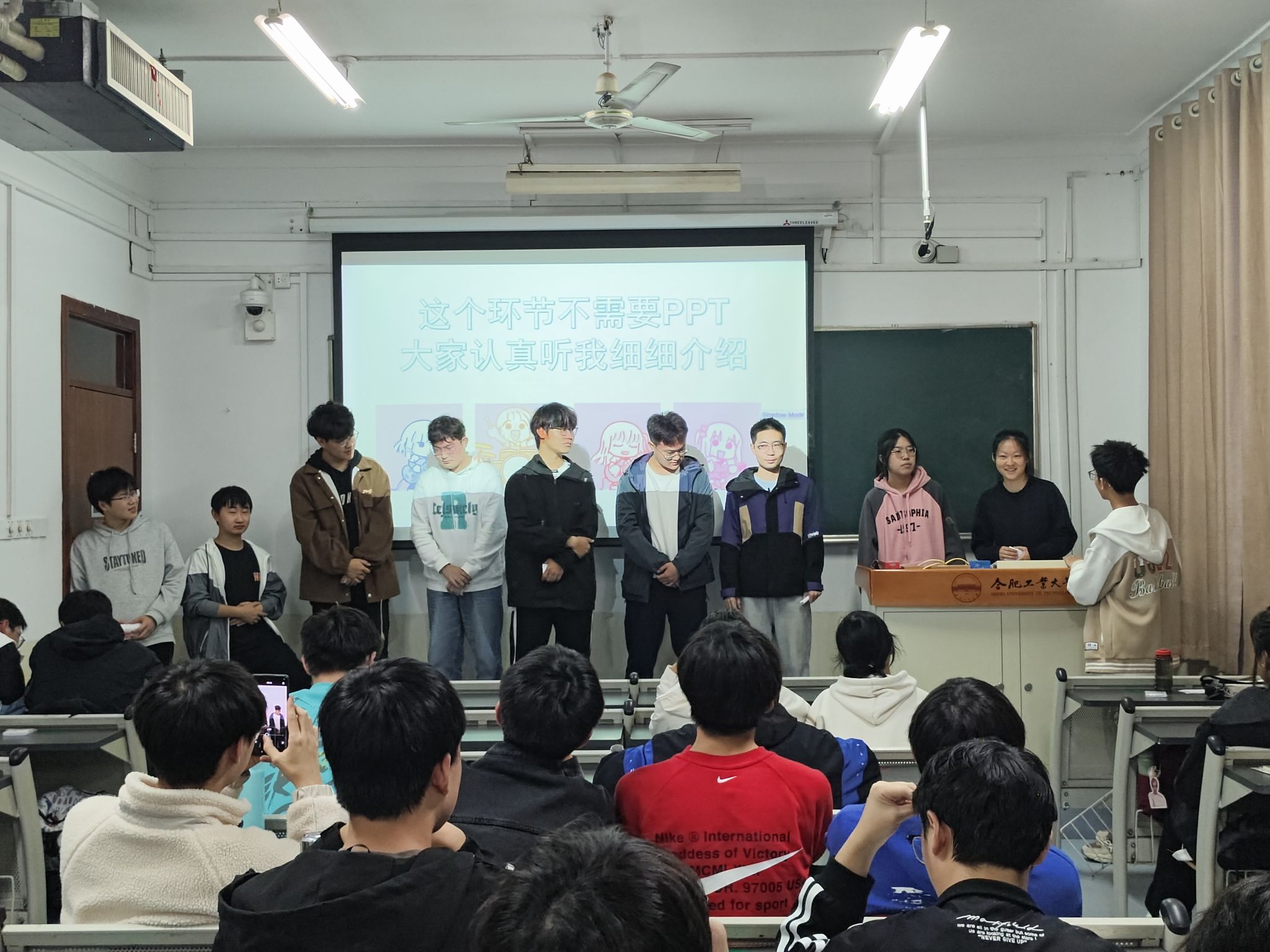 游戏增谊,乐享青春。随着班会的进程,气氛逐渐升温,张涌奇同学作为游戏环节主持人,引导同学们进行了击鼓传花、成语接龙、谁是卧底等多个游戏环节。转专业的新同学也被邀请上台,通过自我介绍和才艺展示,让大家更快地认识和了解彼此。这些新面孔,如同新鲜的血液,为班级注入了新的活力。同学们积极配合、乐在其中,笑声和掌声交织成一首欢快的交响乐,每一个音符都跳跃着青春的活力和快乐的节奏。每一个同学都是故事的主角,他们在游戏中释放自我,在互动中建立友谊,在合作中增强团队精神,深刻体会到了班级这个大家庭的温暖和力量。