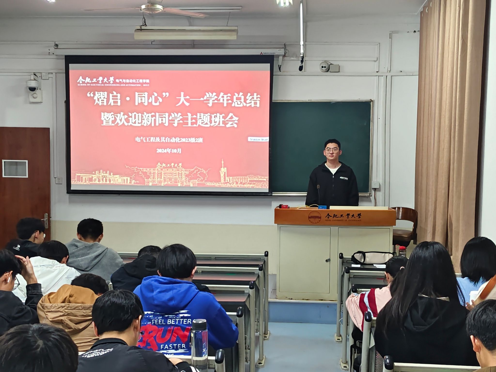 为使班级同学全面了解班级,清晰自身定位,激发前行动力,10月29日晚,m88官网于主教224教室开展“熠起·同心”学年总结暨欢迎新生主题班会,电气工程及其自动化2023级2班班主任陈强以及全体同学参加活动。