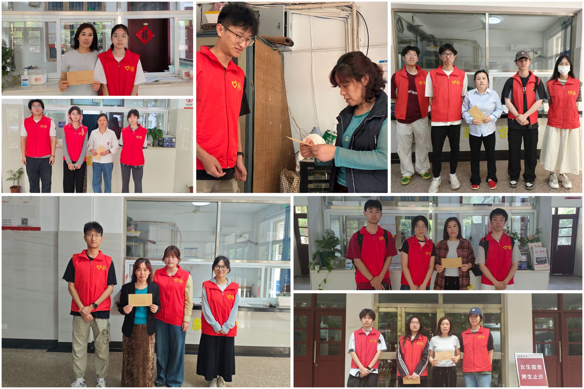 以信言声,用心阐述感谢之音。4月29日,党校学员按照分组前往公司大门、食堂、教学楼等地,为默默无闻,辛勤劳作的劳动者赠与亲手书写的感谢信,为安全校园、整洁校园、温馨校园背后“无名的人”献上节日祝福。全体成员以实际行动走出“驰于空想”和“骛于虚声”的囹圄,看到阿姨、大叔脸上洋溢着幸福的笑容时纷纷感到活动特别有意义,表示这是一次别样的,令人难忘的劳动假期,也对劳动产生别样的,更加深刻的理解。